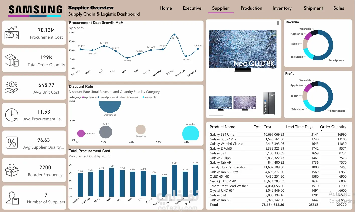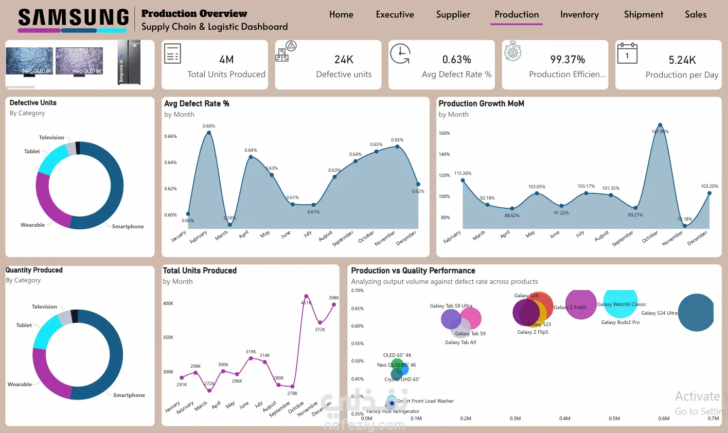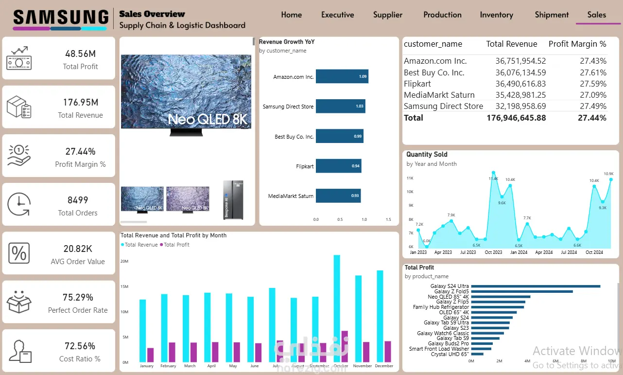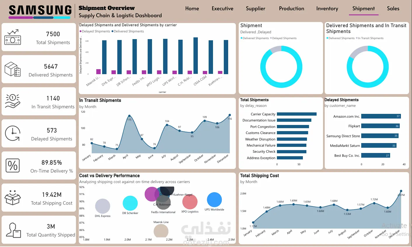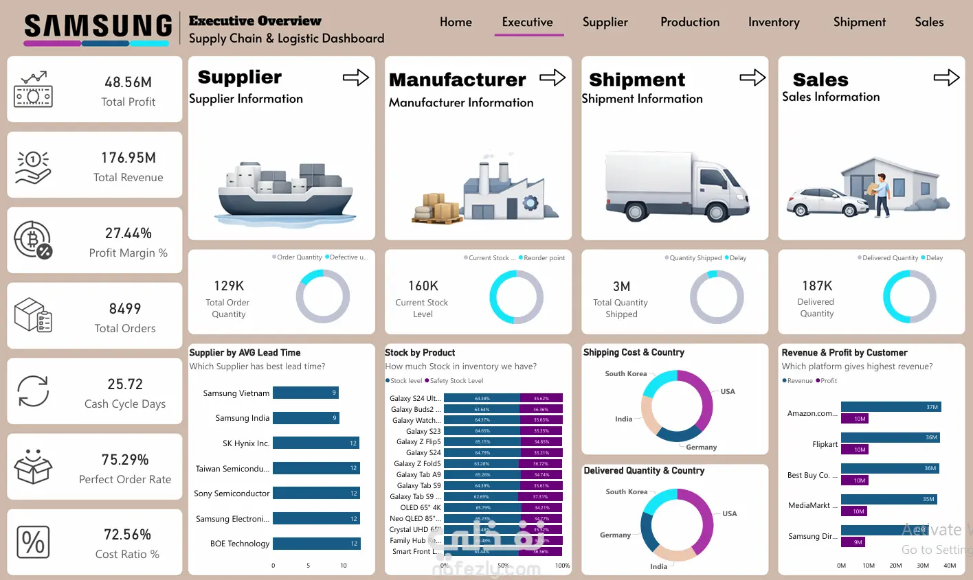 This project presents an end-to-end Supply Chain Analytics Dashboard built using Power BI. It provides a comprehensive analysis of business operations across Sales, Inventory, Production, Procurement, and Shipment. The goal is to transform raw data into actionable insights that support data-driven