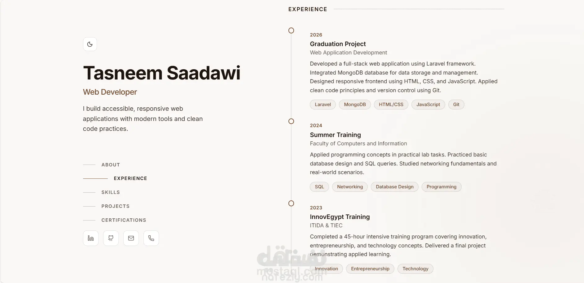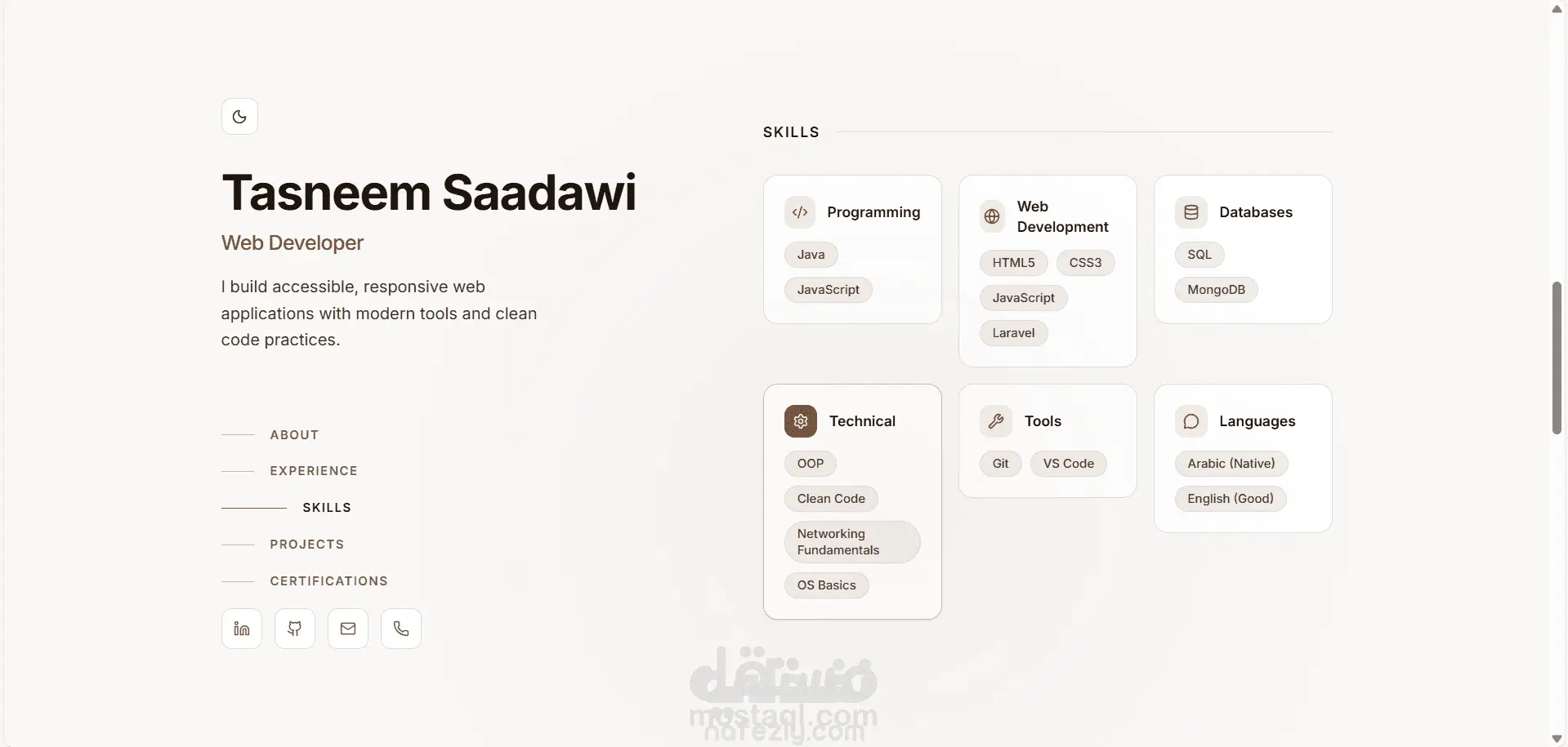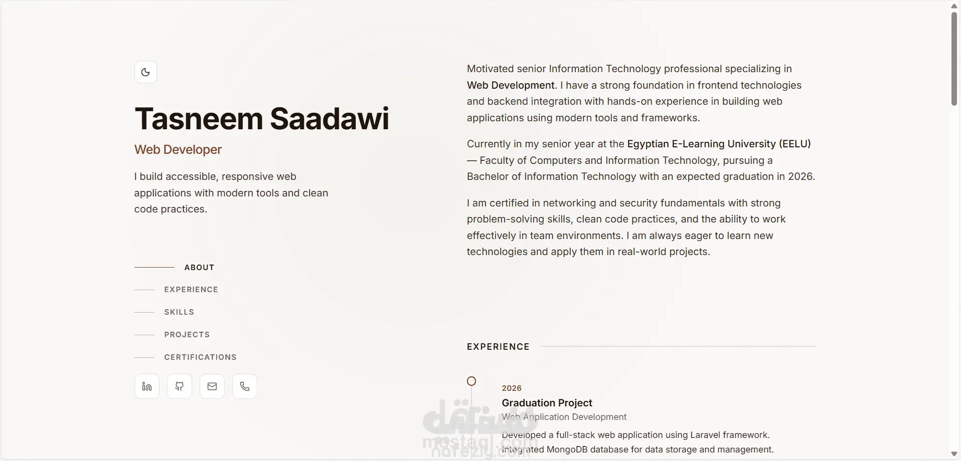 Portfolio شخصي فيه جميع البيانات الخاصه