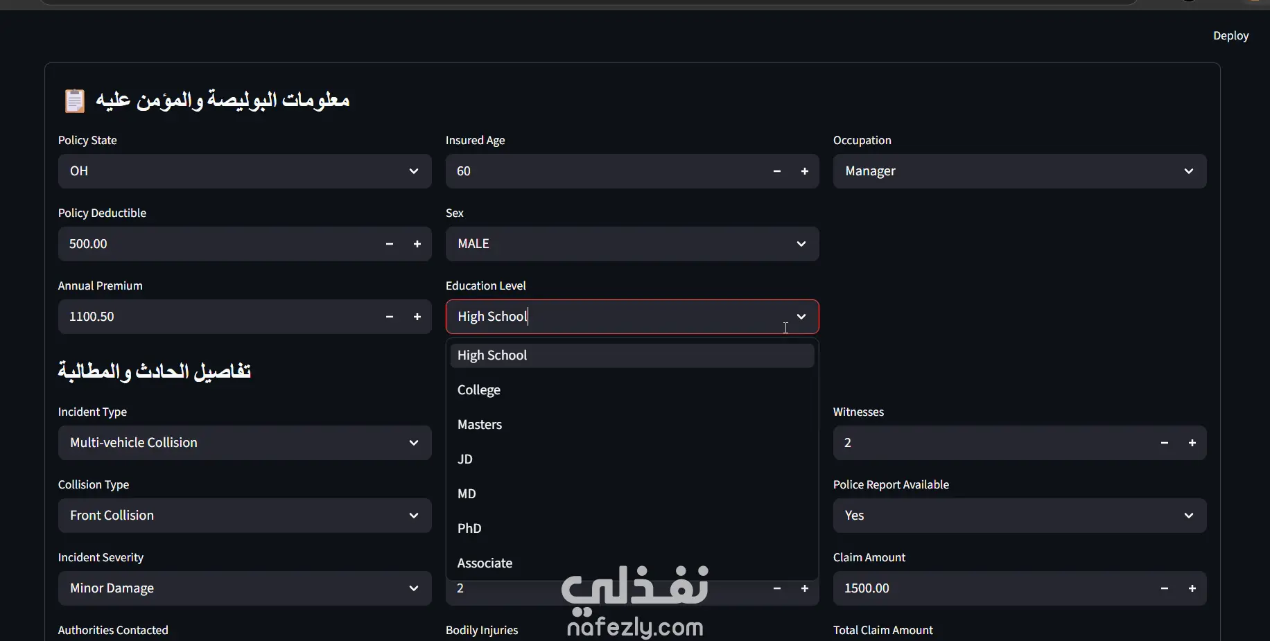 نمذج يتحقق اذا كان العمليه صادقه ام احتياليه للحصول علي التامين من الشركه