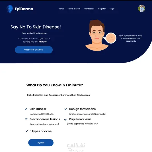 هو موقع يتم فيه تشخيص الامراض الجلديه عن طريق تصوير المريض صوره لجلده وتحليلها بواسطه موديل الذكاء الاصطناعي تم تنفيذه ب react, flask, js, css,