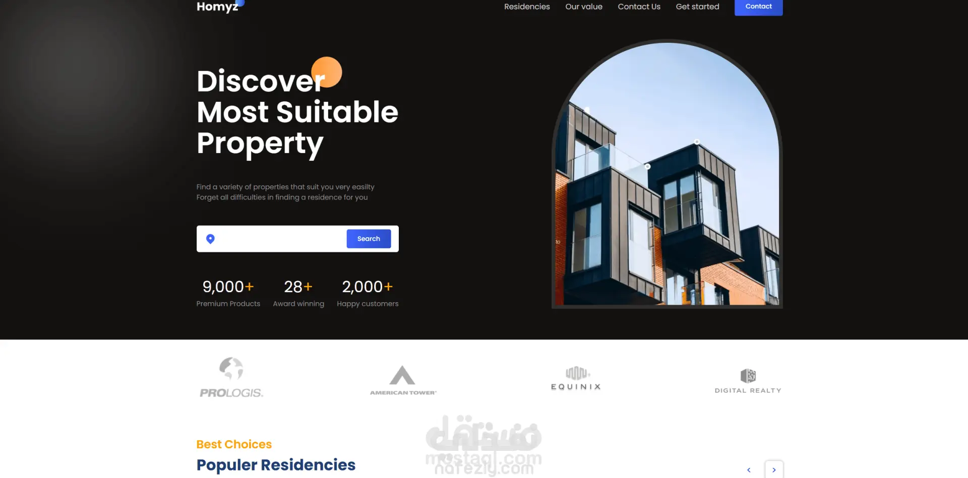 عملت تيمبليت لموقع عقاري بتصميم عصري بيتم فيه بيع وشراء , ونفذته عن طريق react و ال yarn