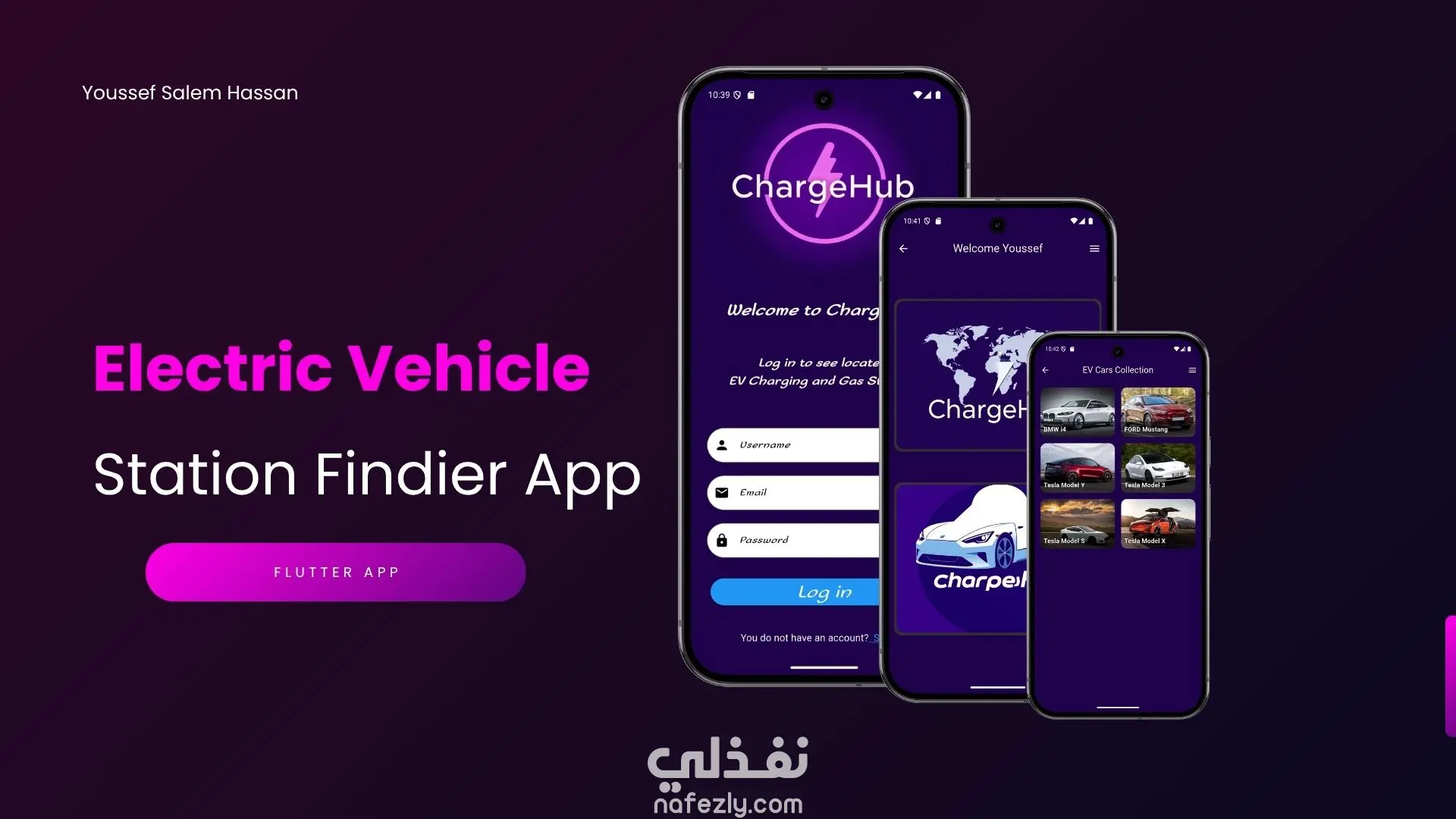 ChargeHub: تطبيق شحن السيارات الكهربائية ومعرض السيارات (Flutter + Firebase)