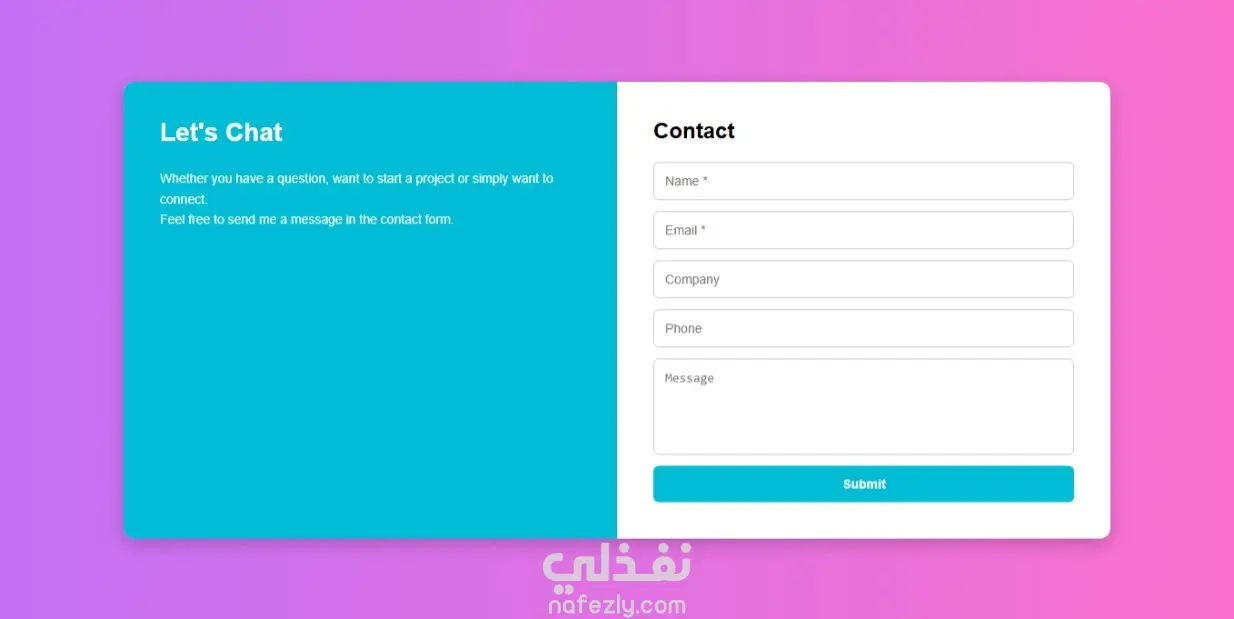 تصميم وتطوير نموذج تواصل (Contact Form UI)