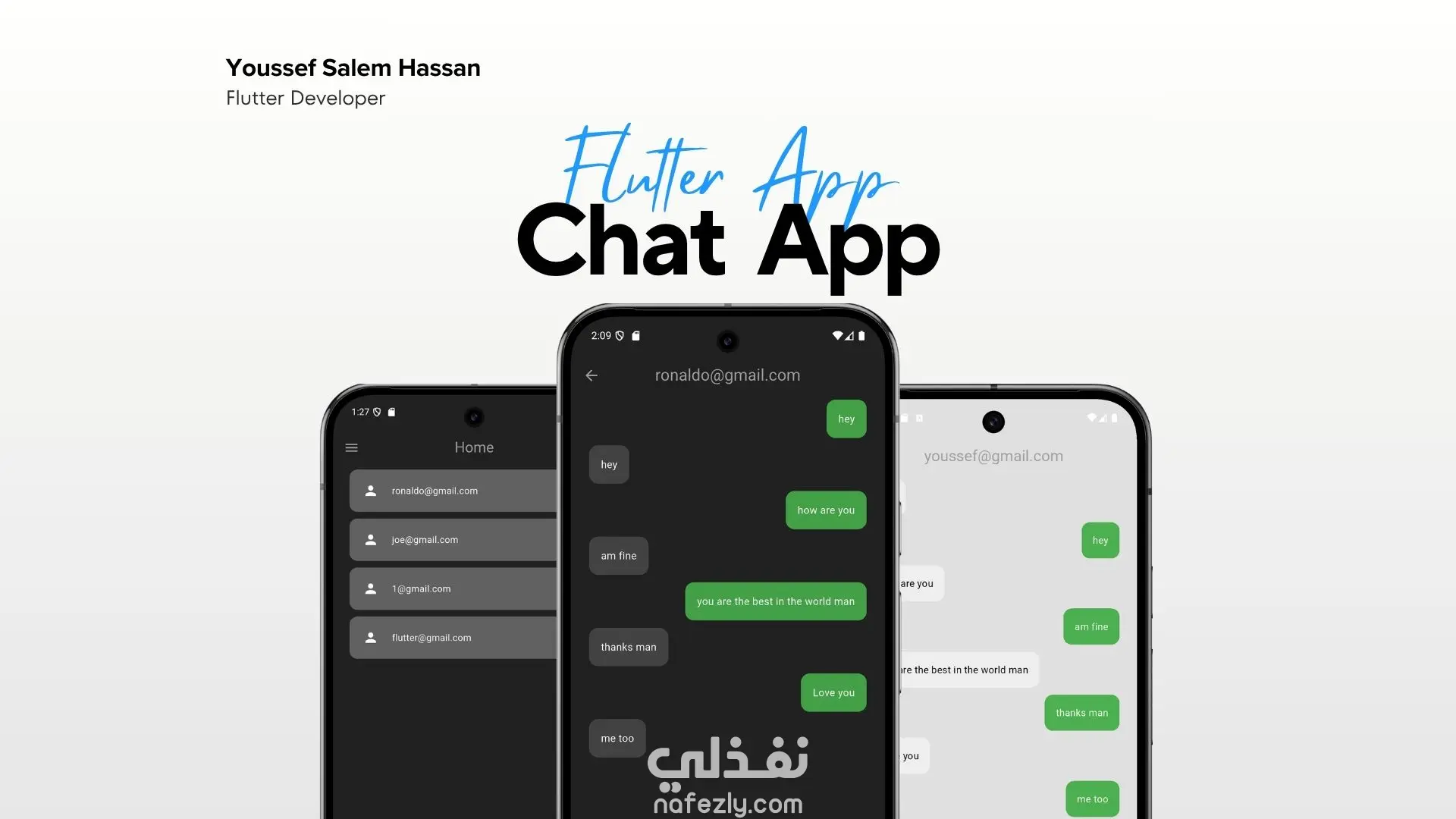 تطبيق مراسلة أنيق متعدد المنصات، مُصمم باستخدام Flutter، يتميز بوضعي داكن وفاتح. يتضمن هذا التطبيق مصادقة المستخدم عبر Firebase، وإمكانية مراسلة فورية، وواجهة مستخدم أنيقة وبسيطة. يُمكن للمستخدمين التسجيل وتسجيل الدخول والدردشة مع مستخدمين آخرين عبر واجهة سهلة الاستخدام.