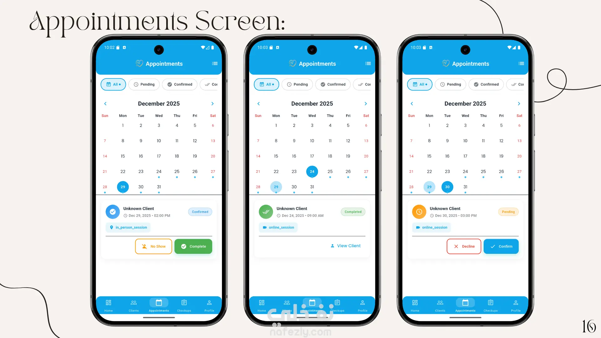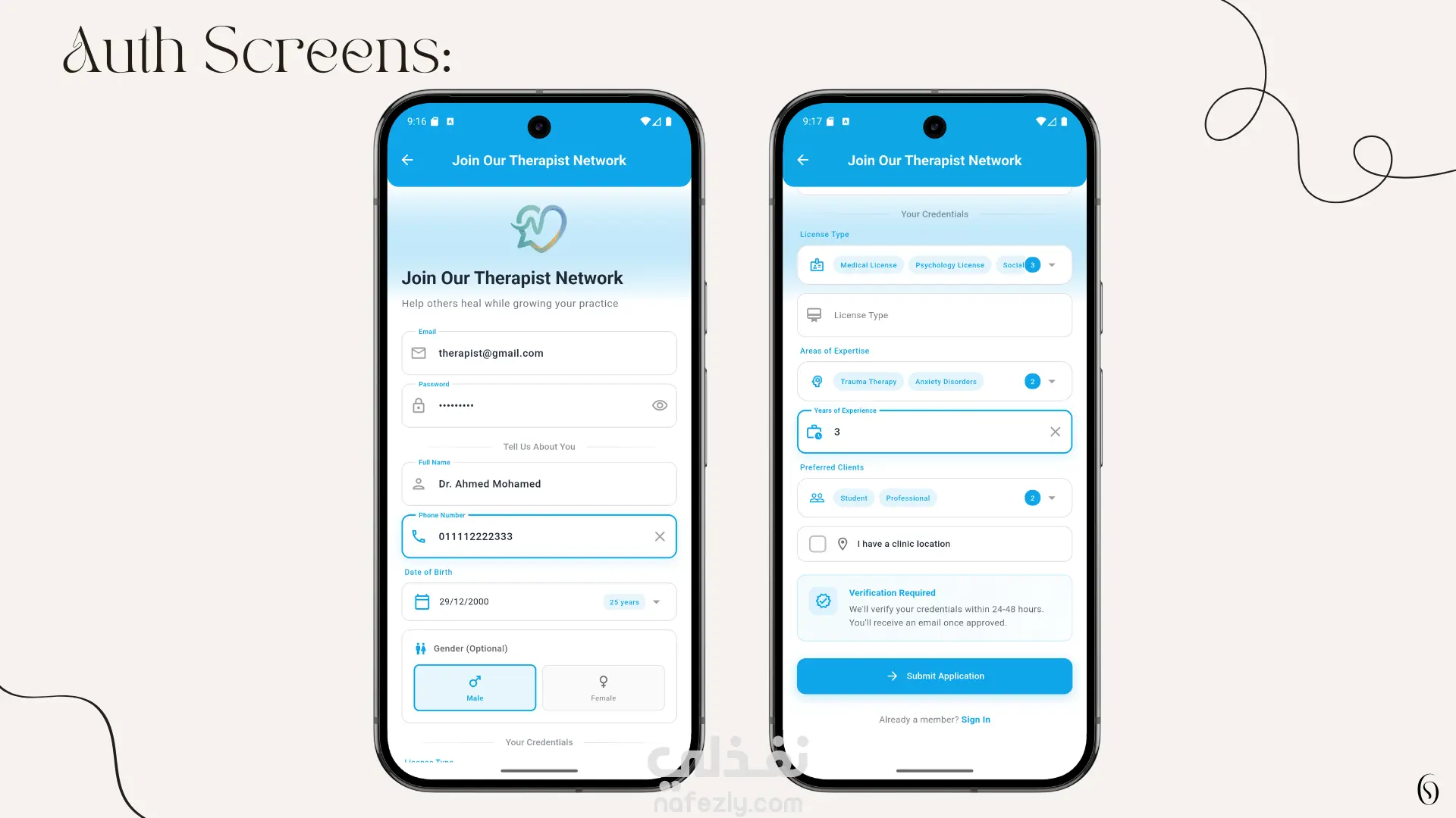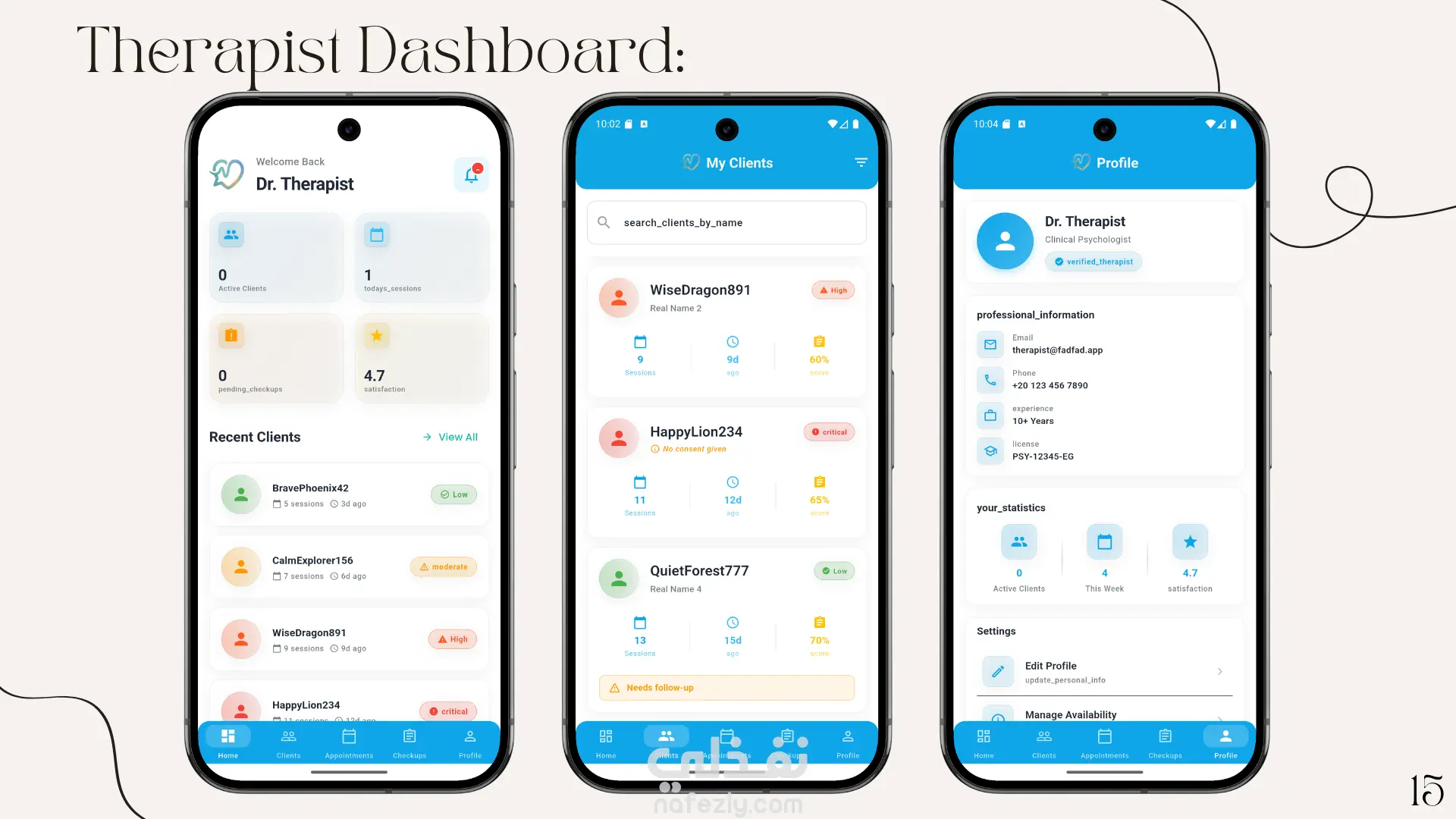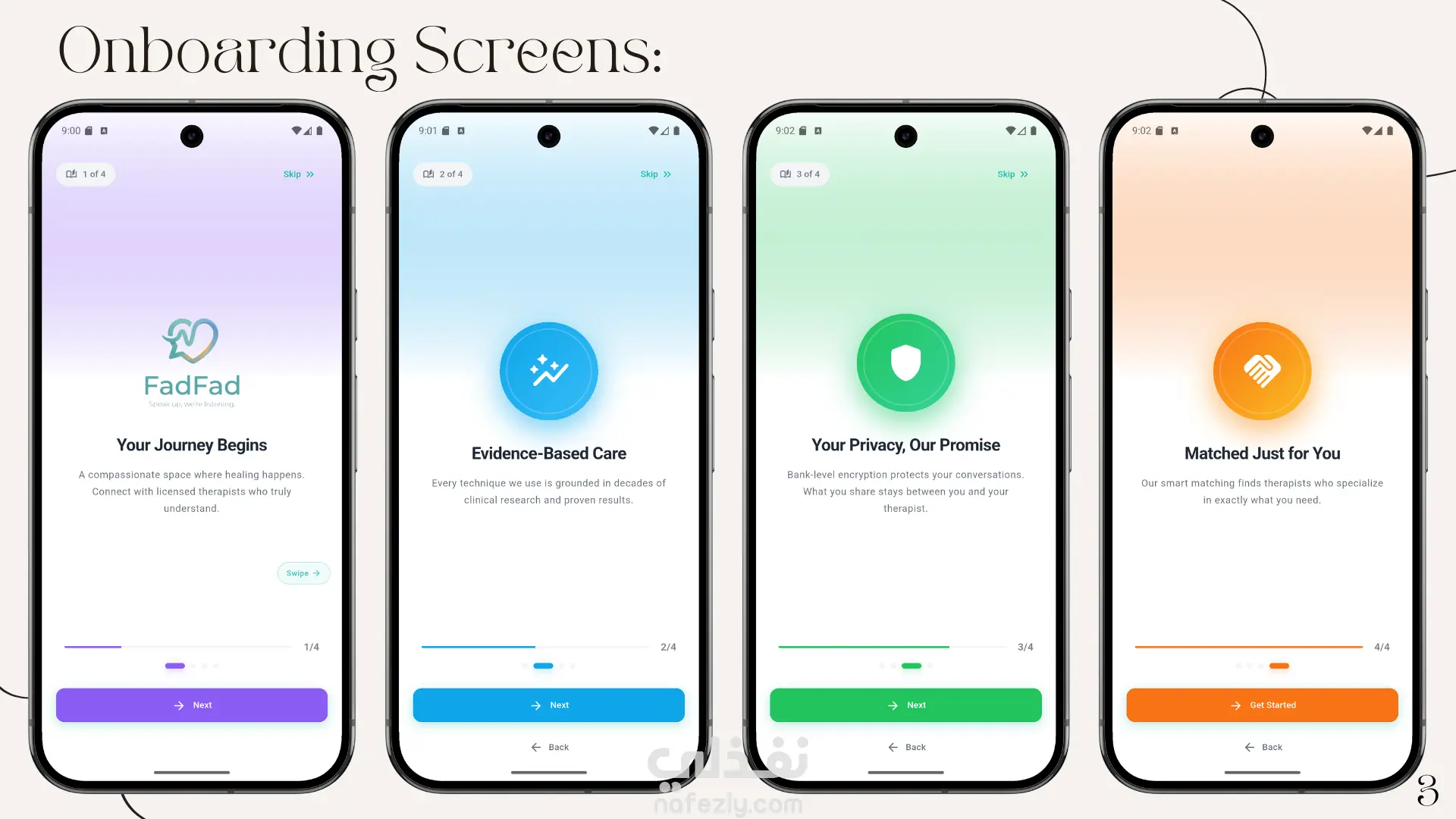 فضفض (FadFad) - تطبيق دعم الصحة النفسية "اتكلم... إحنا سامعينك" فضفض هو تطبيق ذكي يساعدك تفهم حالتك النفسية، تتابع مشاعرك يوميًا، وتوصل بسهولة لمعالجين متخصصين — وكل ده في بيئة آمنة وتحافظ على خصوصيتك. ------------فكرة التطبيق التطبيق معمول عشان يساعد الناس تتكلم وتفهم نفسها من غير خوف أو إحراج، ويقدم دعم نفسي بشكل بسيط وسهل الاستخدام. ------------ خصوصيتك أولاً * تقدر تستخدم التطبيق بدون ما تظهر اسمك الحقيقي * بيتم إنشاء اسم عشوائي ليك داخل التطبيق * بياناتك بتكون محمية ومش بيتم مشاركتها * مفيش أي ضغط اجتماعي أو إحراج ------------✨ أهم المميزات ------------ تقييم حالتك النفسية * تقدر تعمل تقييم سريع لحالتك * هتحصل على نتيجة واضحة وسهلة الفهم * التطبيق يقترح لك خطوات تساعدك تتحسن ------------ متابعة حالتك يوم بيوم * تسجل حالتك المزاجية يوميًا * تكتب ملاحظات عن يومك * تشوف تطورك مع الوقت بشكل بسيط ------------ الوصول لمعالجين متخصصين * تلاقي معالجين مناسبين لحالتك * تقدر تحجز جلسة بسهولة * تتابع مواعيدك من داخل التطبيق ------------ دردشة ودعم * إمكانية التواصل مع المعالج * تجربة مريحة وسهلة في الاستخدام ------------ تقارير مفيدة * تقارير توضح حالتك النفسية * تساعدك تفهم نفسك بشكل أفضل * ممكن تشاركها مع المعالج ------------ مناسب لكل المستخدمين التطبيق بيقدم تجربة مختلفة حسب المستخدم: * للطلاب (ضغط الدراسة) * للمعلمين (ضغط الشغل) * لكبار السن (الدعم والاهتمام) ------------ يدعم العربي والإنجليزي * تقدر تستخدم التطبيق باللغة اللي تفضلها * تصميم مريح وسهل الاستخدام ------------ بيشتغل على * موبايل (Android و iPhone) * كمبيوتر * متصفح الإنترنت ------------ حالة التطبيق * التطبيق جاهز بالكامل كنموذج أولي (MVP) * يمكن تطويره وربطه بسيرفر بسهولة * جاهز للإطلاق والتوسع ------------ مناسب لـ * مشاريع الصحة النفسية * تطبيقات استشارات أونلاين * منصات دعم ومساعدة * شركات ناشئة في مجال HealthTech