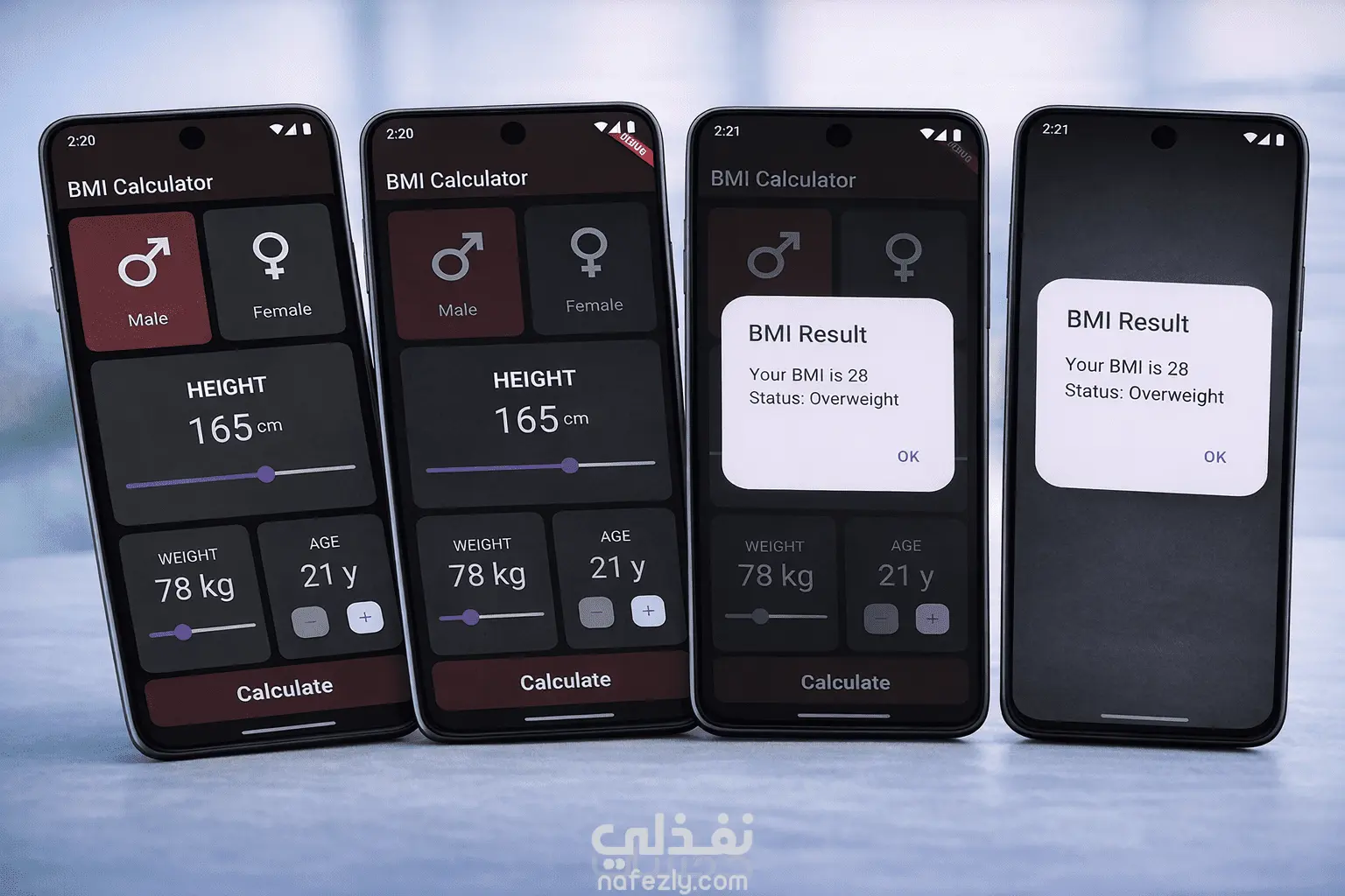 تصميم وتطوير 3 واجهات تطبيق موبايل باستخدام Flutter