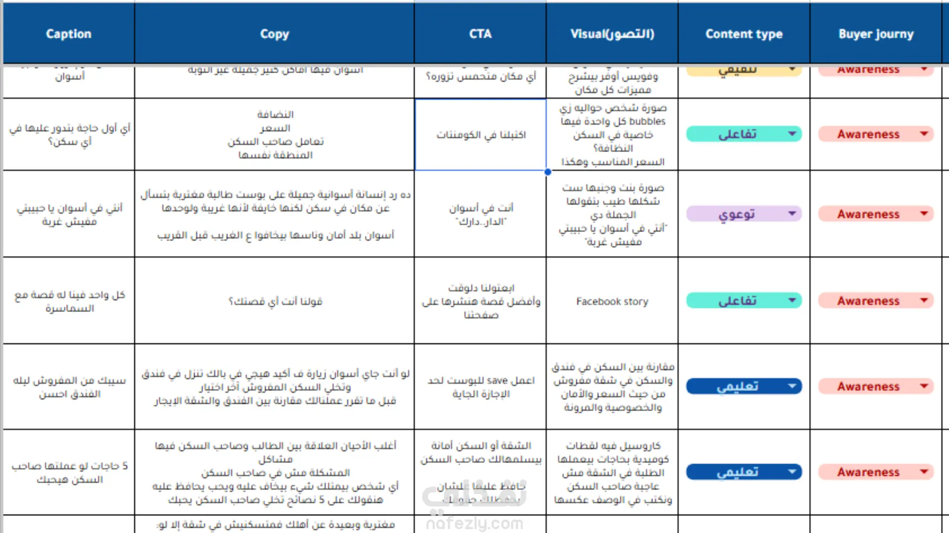 قمت بإعداد خطة محتوى لـ شركة عقارية تضمنت: - تحليل SWOT Analysis - دراسة دقيقة للمنافسين - إعداد خطة نشر لمدة شهر تتضمن (نوع المحتوى- الهدف منه - شكل المحتوى)