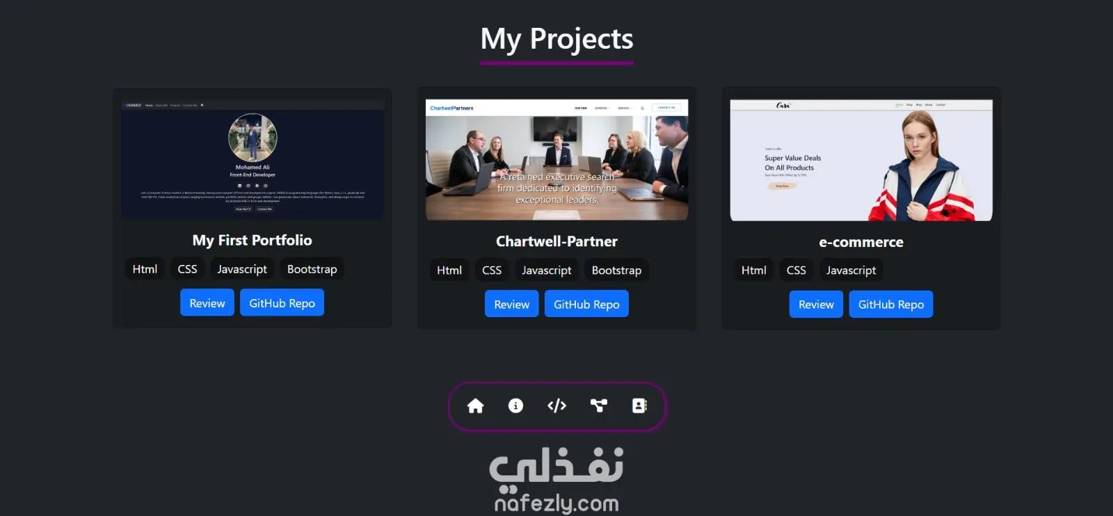 قمت بتنفيذ معرض الاعمال الخاص بي باستخدام angular وضعت داخله كل المهارات الذي امتلكها و سابقة الاعمال التي قمت بتنفيذها