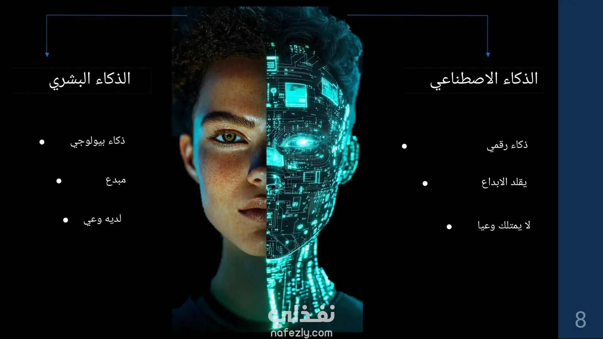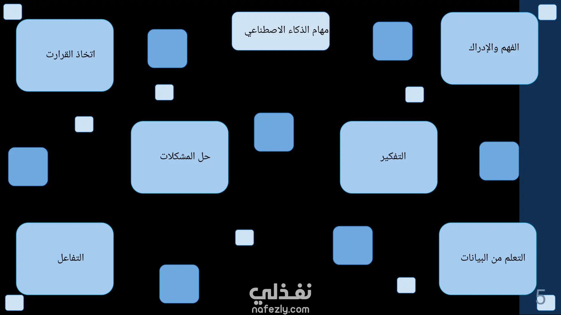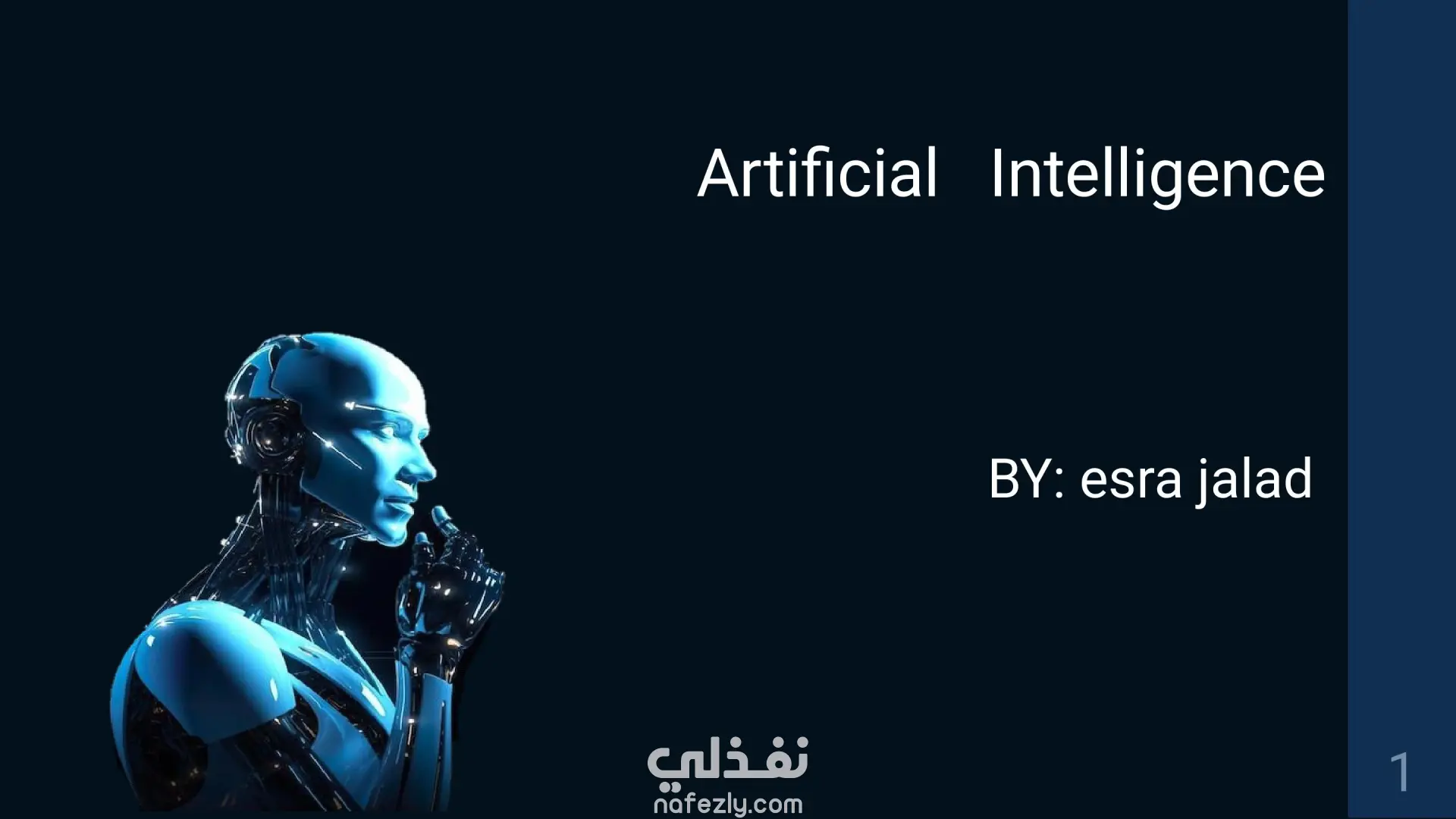 تصميم عرض تقديمي يحوي معلومات بسيطة حول الذكاء الاصطناعي بواسطة تطبيق powerpoint وهنا بعض الشرائح من العمل