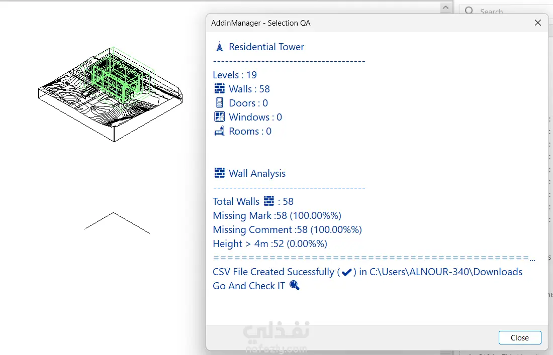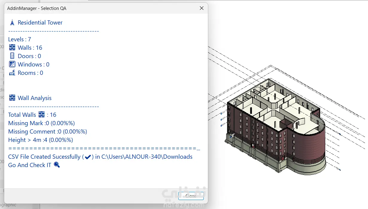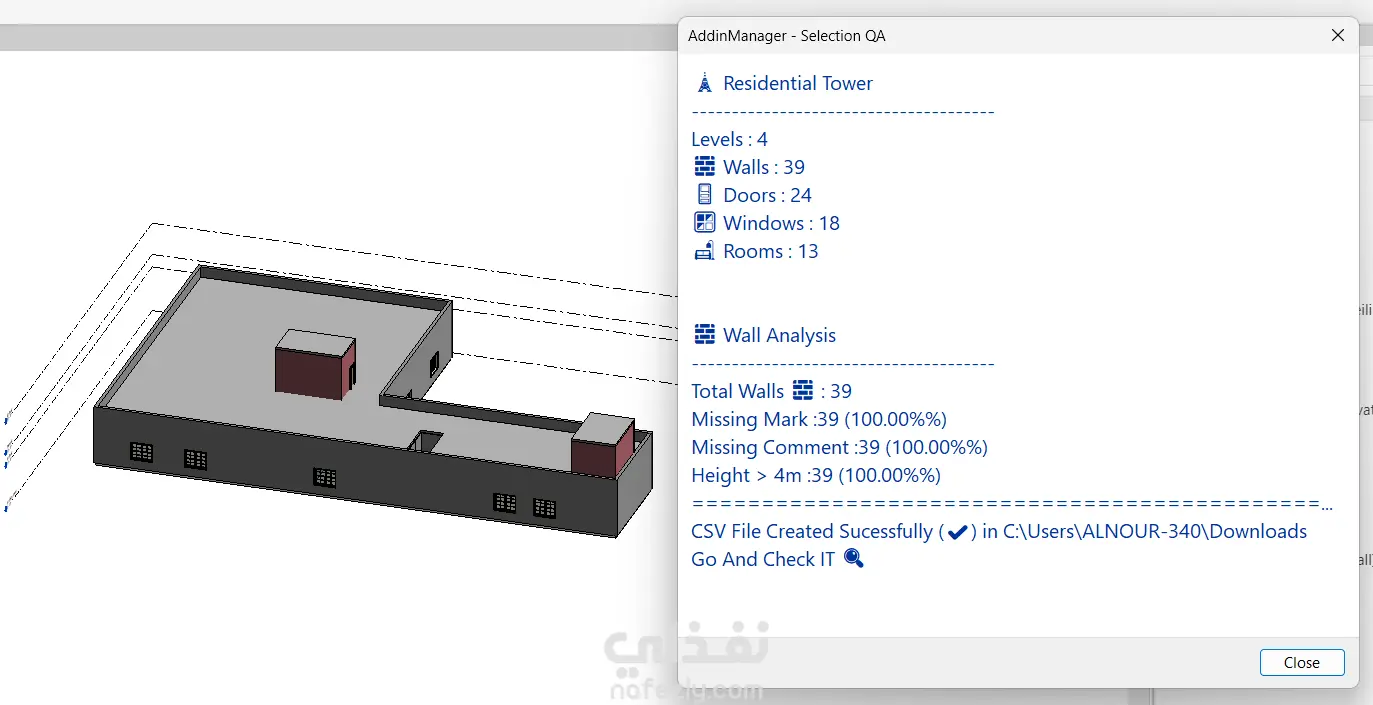 قمت بتطوير إضافة (Plugin) مخصصة لبرنامج Autodesk Revit باستخدام لغة C# وRevit API، بهدف تحليل النموذج الإنشائي واكتشاف الأخطاء وتحسين جودة البيانات (BIM Quality Assurance).