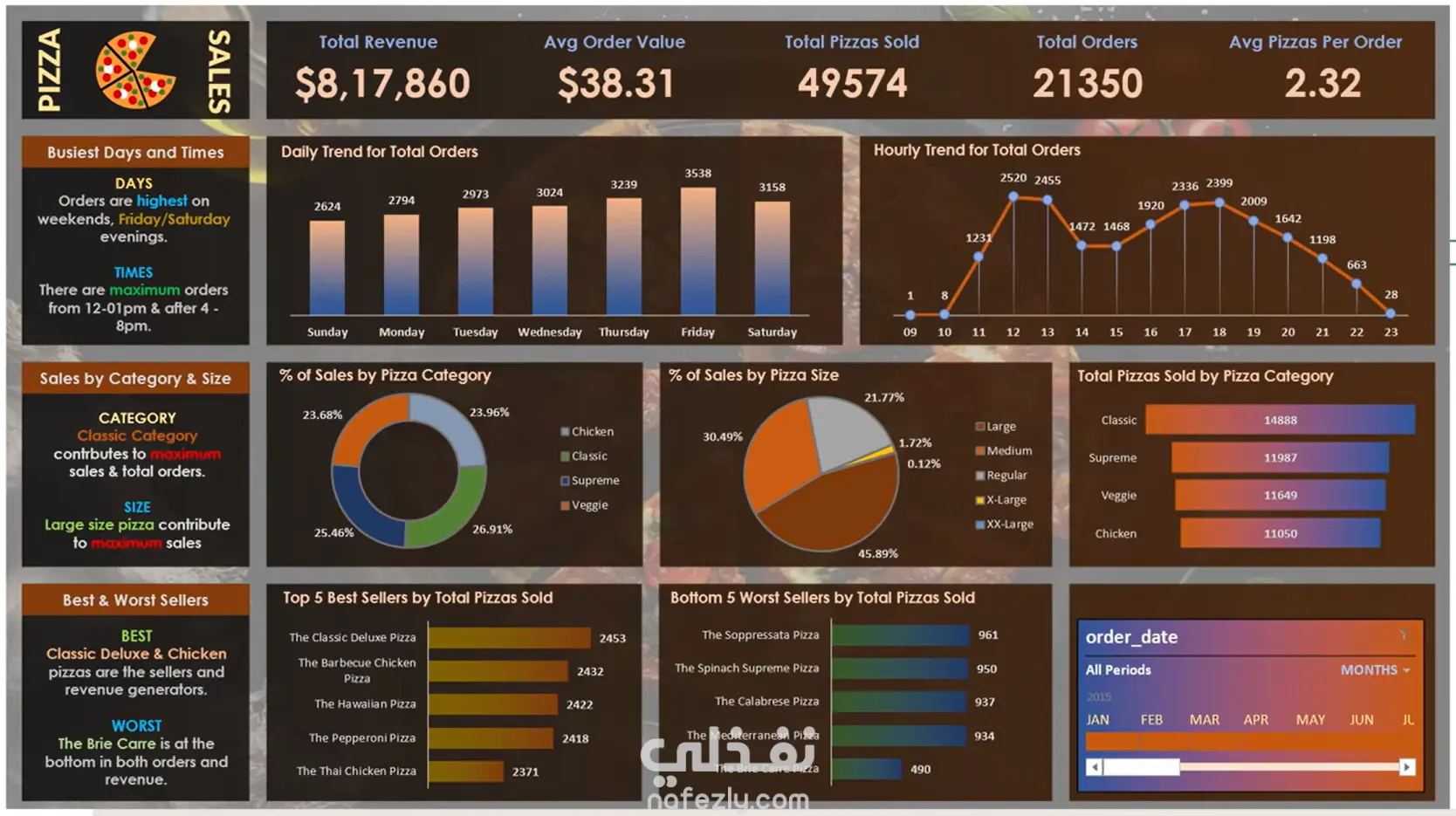 هذا المشروع عبارة عن Dashboard تفاعلي باستخدام Power BI لتحليل أداء مطعم من حيث المبيعات، الطلبات، وسلوك العملاء عبر الزمن. يهدف المشروع إلى تحويل البيانات الخام إلى Insights واضحة تساعد في تحسين الأداء وزيادة الأرباح.