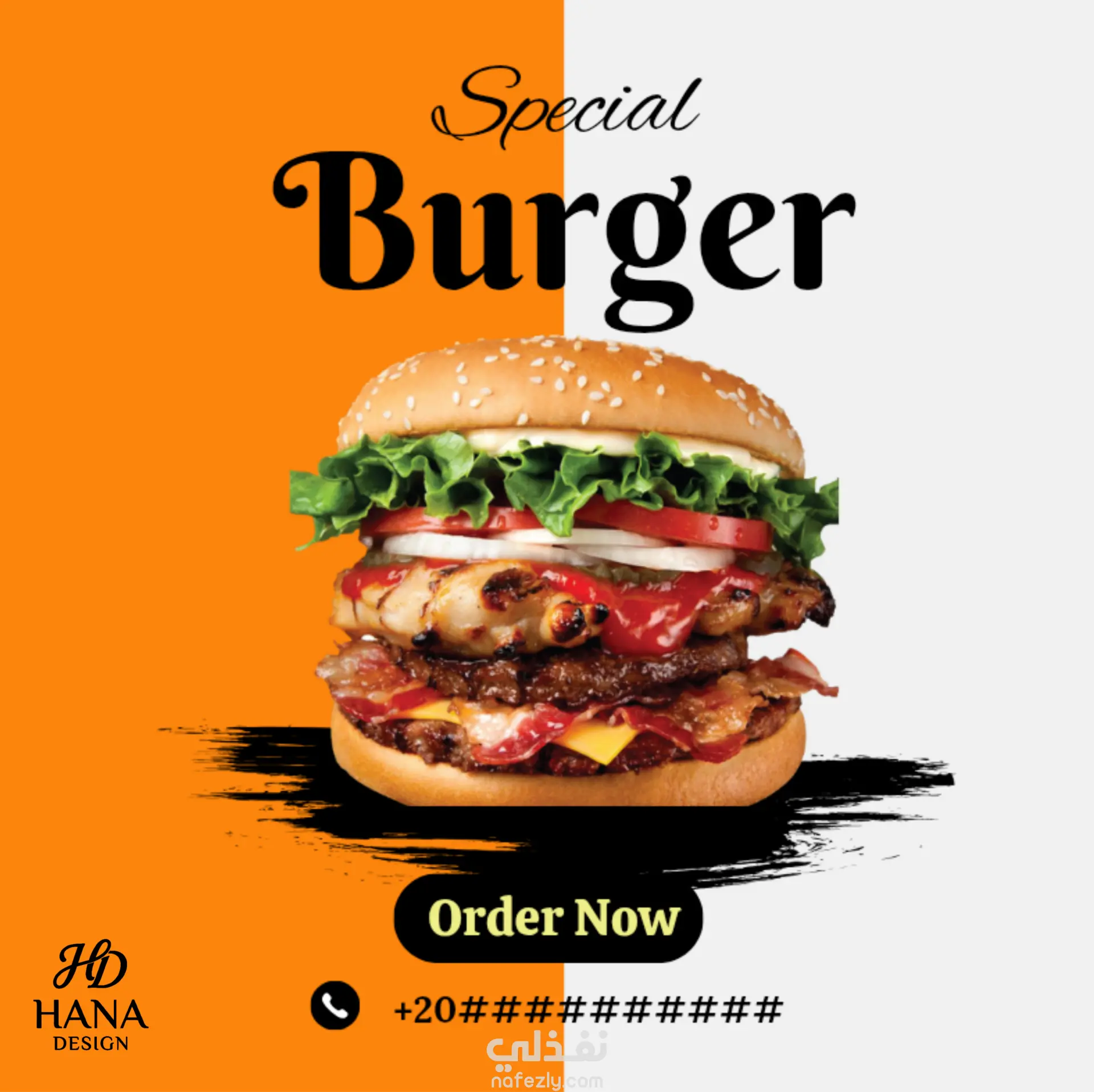 تنسيق عناصر التصميم (Layout) بشكل يحقق التوازن البصري. استخدام خطوط عصرية (Typography) واضحة ومناسبة لهوية المطاعم. دمج صور عالية الجودة مع إضافة لمسات فنية لإبراز تفاصيل المنتج. التصميم جاهز للنشر مباشرة على منصات التواصل الاجتماعي بأعلى دقة."
