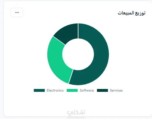 توزيع المبيعات: مخططات دائرية (Donut Charts) لتوضيح فئات المبيعات (Electronics, Software, Services).