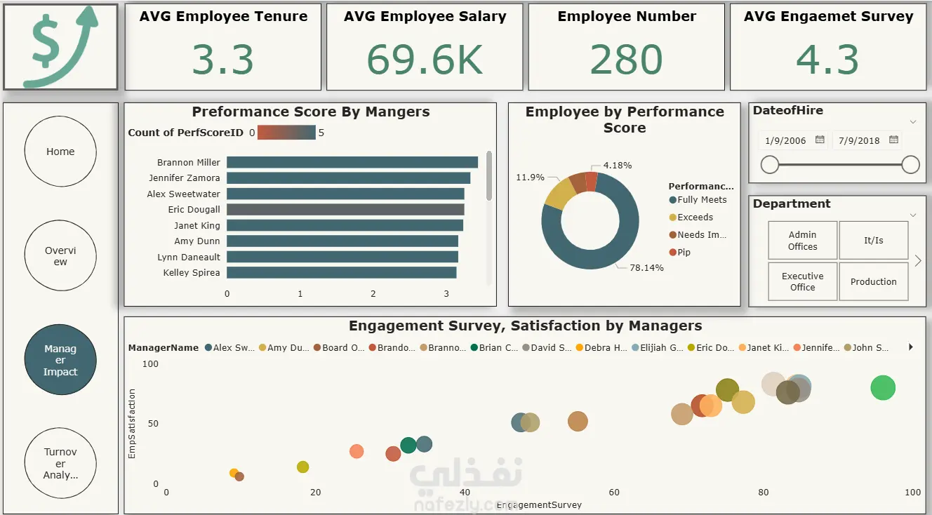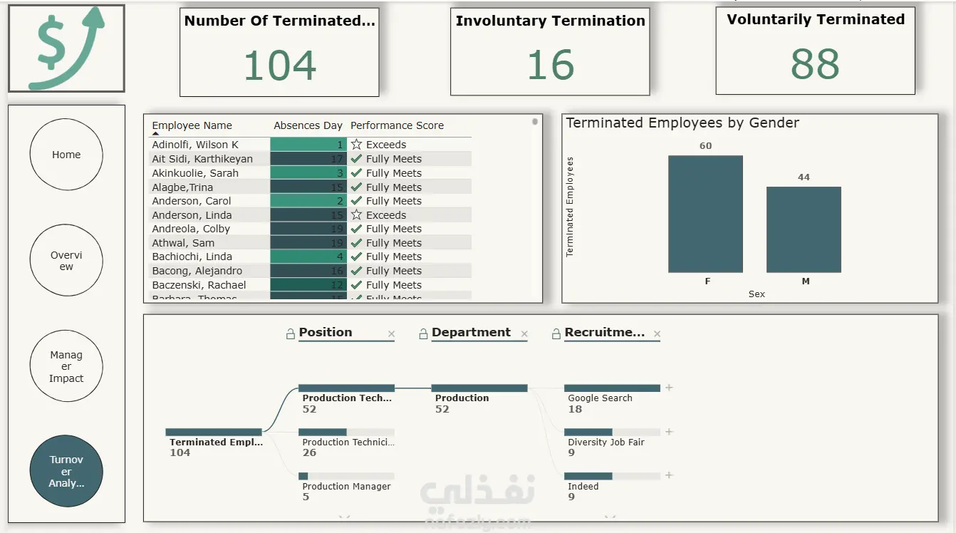 مرحبًا، هذا المشروع عبارة عن تصميم Dashboard احترافي لتحليل بيانات الموارد البشرية (HR) باستخدام Power BI. يشمل العمل تحليل الأداء الوظيفي، معدل دوران الموظفين، وتقييم مصادر التوظيف لدعم اتخاذ القرار. تم إنشاء مؤشرات KPI مثل عدد الموظفين، معدل الدوران، ومتوسط الرواتب باستخدام DAX وتحليل البيانات. يتميز الداشبورد بتصميم تفاعلي وسهل الاستخدام مع أدوات متقدمة مثل Decomposition Tree لاكتشاف الأسباب الجذرية. الملف متاح بصيغة Power BI وقابل للتعديل مع إمكانية تخصيصه حسب احتياجات أي شركة.