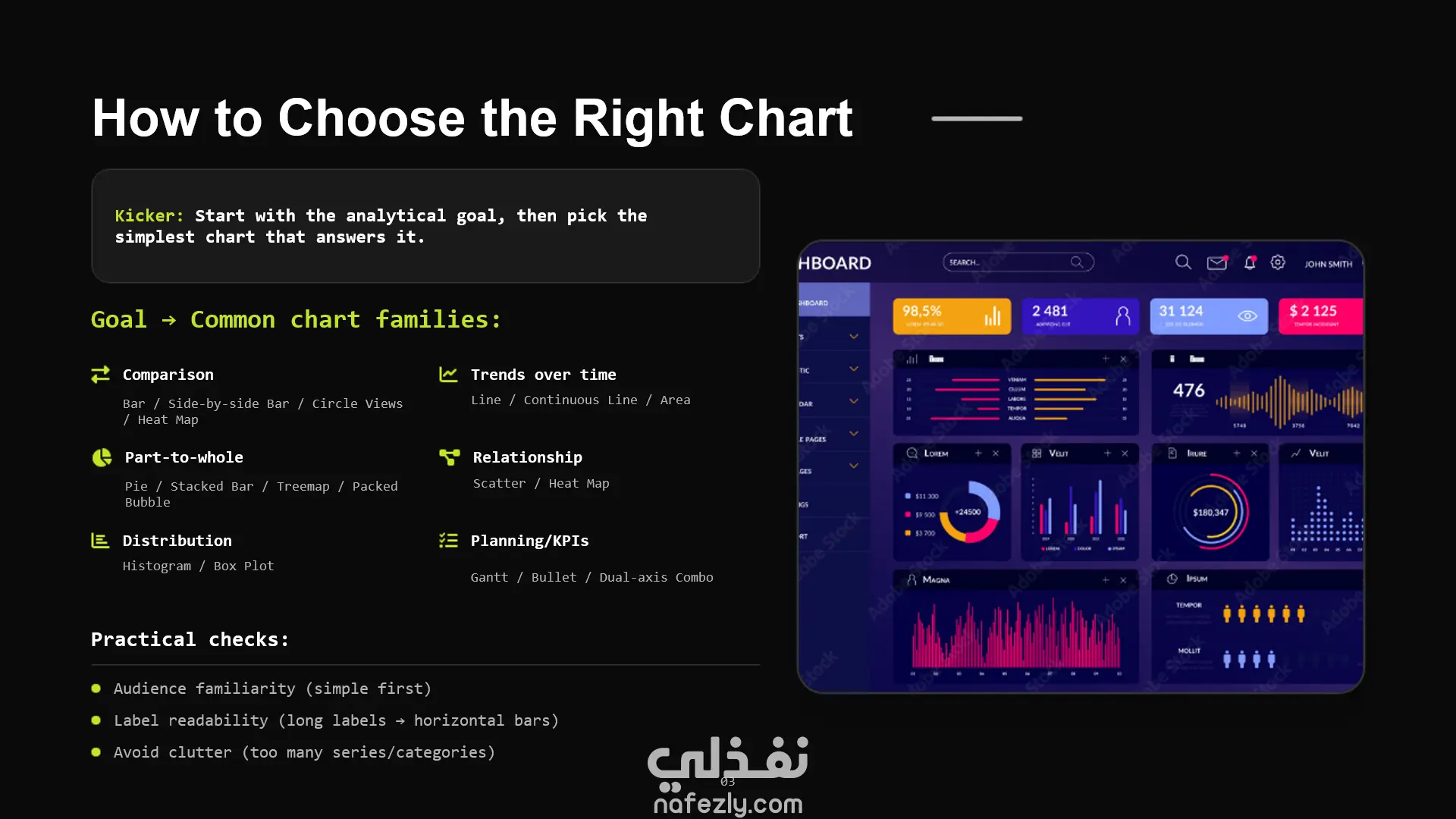 دليل أنواع الرسوم البيانية (Chart Types Guide) – عرض تقديمي احترافي