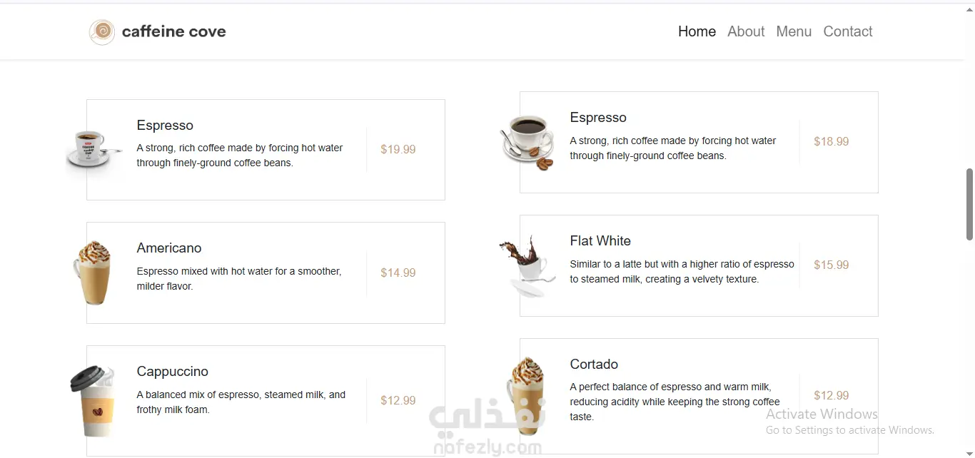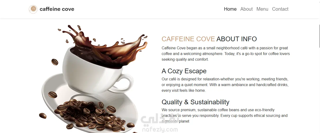 موقع الكوفي هو منصة إلكترونية تتيح للعملاء التعرف على قائمة المشروبات والوجبات المتاحة، مع عرض الأسعار والعروض الخاصة. يوفر الموقع إمكانية الطلب أو التواصل بسهولة، كما يتميز بتصميم بسيط ومتوافق مع جميع الأجهزة لتجربة استخدام مريحة وسريعة. ☕