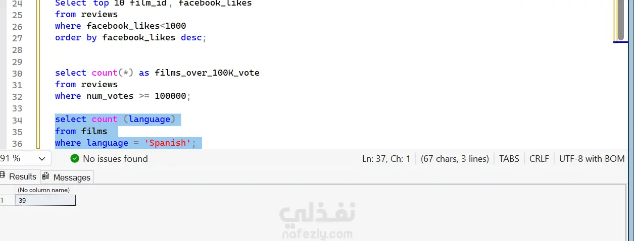 أوظف مهاراتي في لغة SQL لبناء استعلامات فعّالة تهدف إلى استخراج البيانات وتحليلها من قواعد البيانات المترابطة، حيث أركز على ربط الجداول المتعددة (Joins) وتصفية النتائج بدقة للوصول إلى رؤى واضحة تخدم أهداف التحليل. أهتم بكتابة كود منظم يضمن صحة العلاقات بين البيانات وتجهيزها بشكل مهيكل، مما يسهل عملية الانتقال من مرحلة البيانات الخام إلى مرحلة استخلاص النتائج والتقارير التحليلية التي تدعم اتخاذ القرار