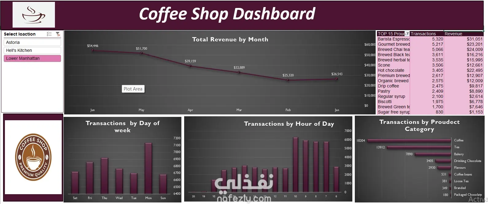 أهلاً بك، هل تبحث عن تحويل بياناتك الخام إلى رؤى بصرية سهلة الفهم تساعدك في تطوير مشروعك؟ بصفتي خبيراً في تحليل البيانات، أقدم لك خدمة تصميم لوحات بيانات تفاعلية (Interactive Dashboards) تمكنك من مراقبة أداء عملك بضغطة زر. ما الذي سأقدمه لك في هذا المشروع (كما يظهر في معرض أعمالي): تحليل زمني دقيق: مراقبة الإيرادات شهرياً (Total Revenue by Month) لمعرفة مواسم الذروة والانخفاض. تحليل سلوك العملاء: معرفة أكثر الأيام مبيعاً خلال الأسبوع (Transactions by Day of Week) وأكثر الساعات ازدحاماً (Transactions by Hour of Day). تحليل المنتجات: تحديد المنتجات الأكثر مبيعاً والأكثر ربحية (Top 15 Products) وتصنيف المبيعات حسب الفئة (Transactions by Product Category). لوحة تفاعلية: إضافة فلاتر (Slicers) تتيح لك العرض بناءً على الفرع أو الموقع (Location) لتسهيل المقارنة بين الفروع.