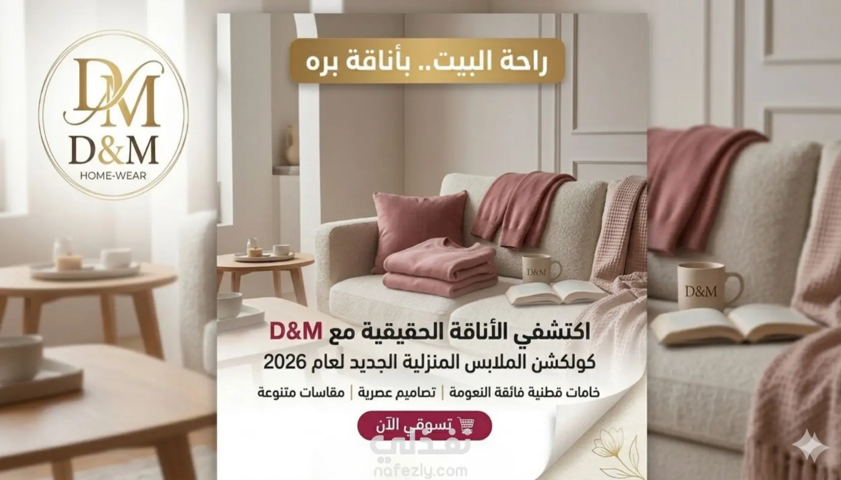 تصميم لإعلان عن صفحه لبيه الملابس البيتى