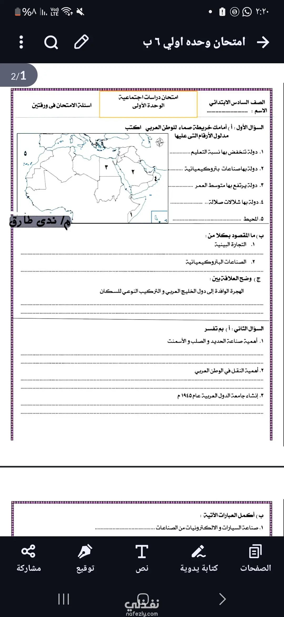 امتحان ٢ صفحه (مدعم بالصور عند الحاجه + نموذج اجابه ) مقابل ٥ دولار فقط