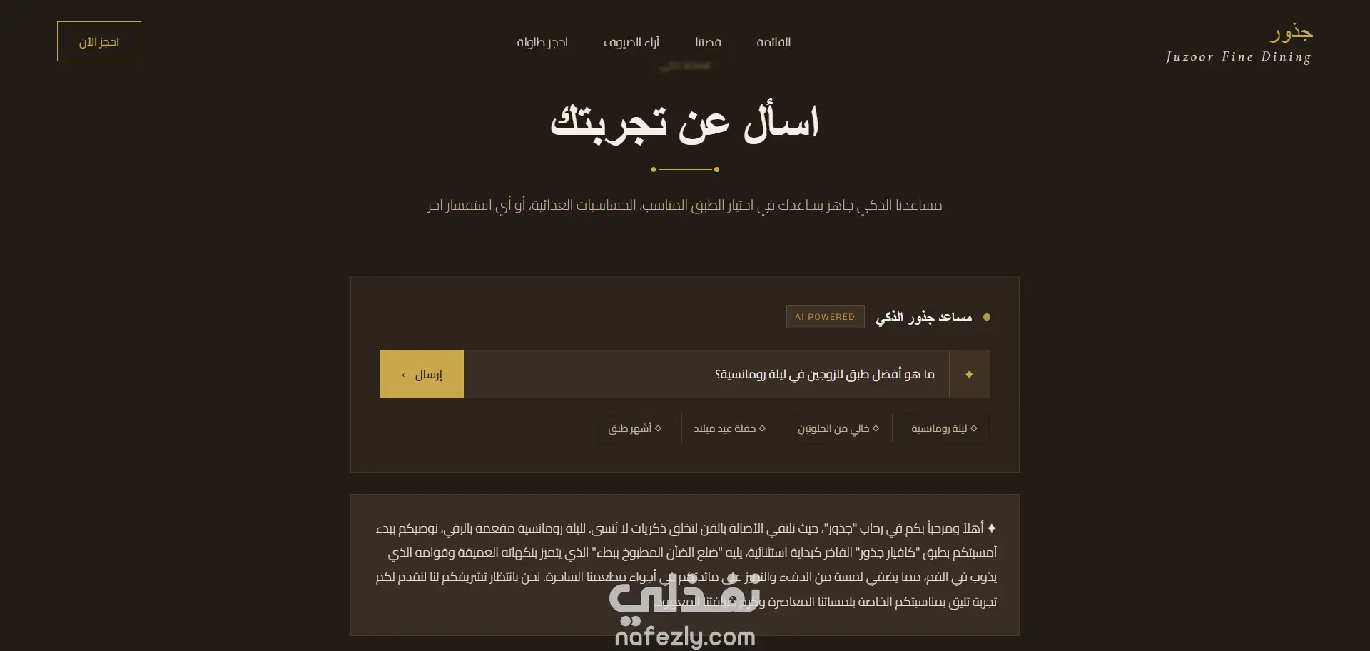 قمت بتطوير منصة Juzoor كنظام Full-Stack لإدارة المطاعم، يتيح التحكم الكامل في الحجوزات، عرض المنيو بشكل رقمي، وتحليل أداء المطعم من خلال لوحة تحكم متقدمة.
