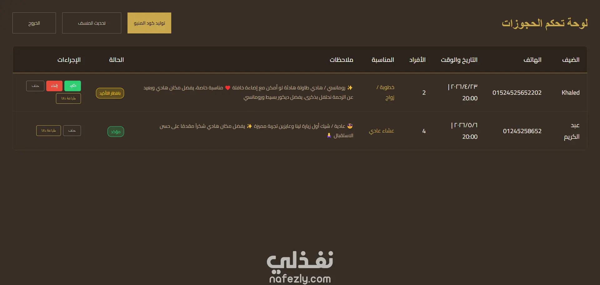 💡 نظام متكامل لإدارة المطاعم يهدف إلى رقمنة عمليات الحجز وتحسين تجربة العملاء من خلال منيو تفاعلي ونظام إدارة ذكي.