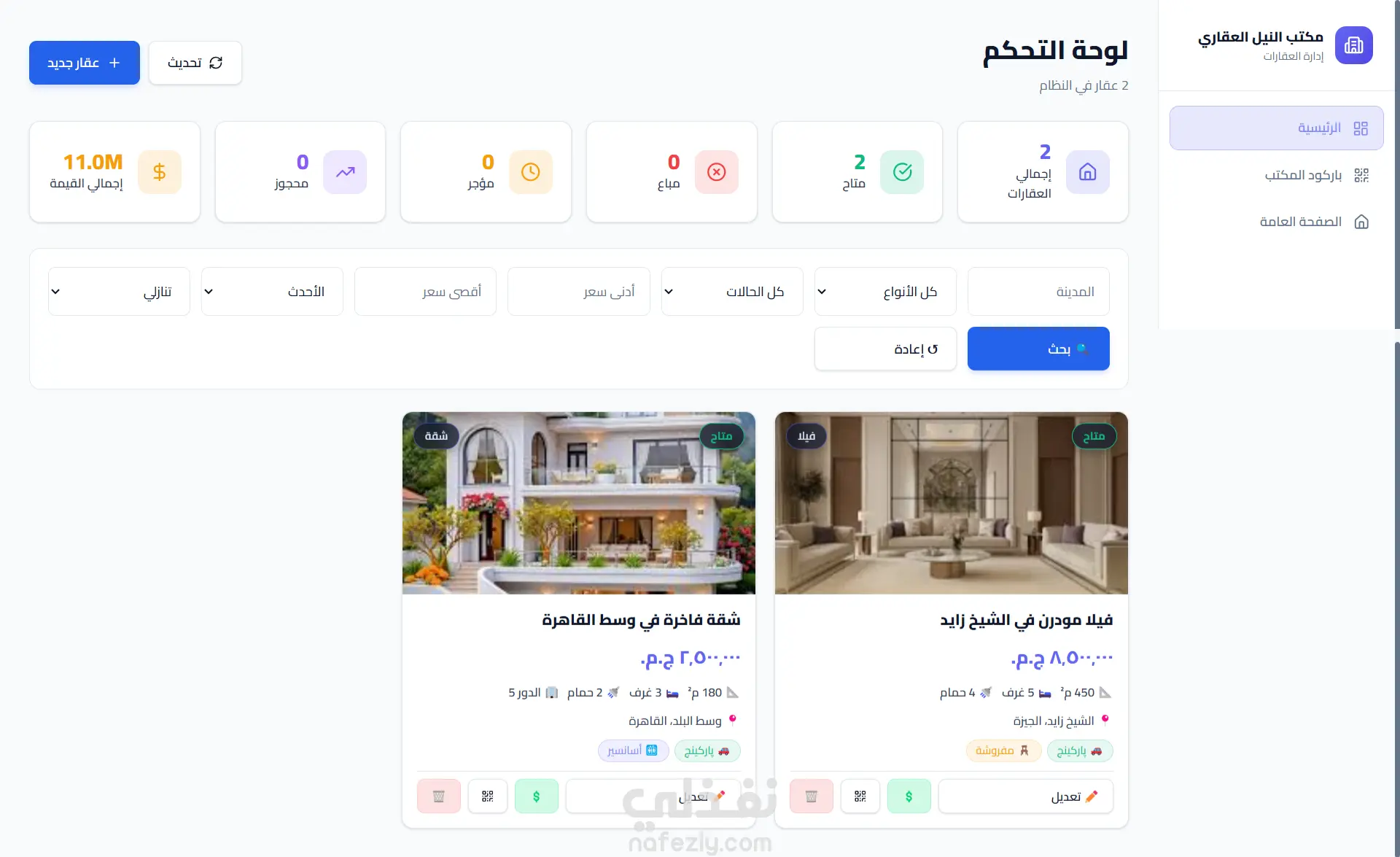 إدارة العقارات بسهولة (إضافة – تعديل – حذف)