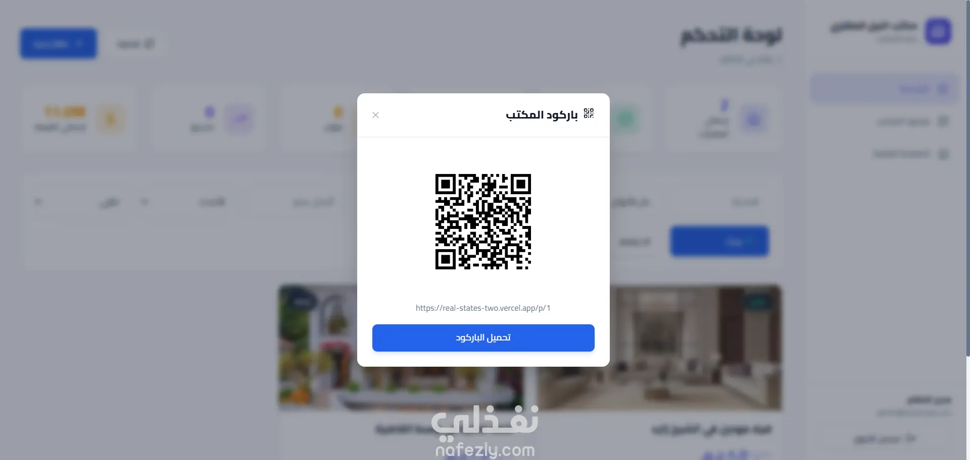 قمت بتطوير منصة متقدمة كنظام متكامل لإدارة العقارات، يتيح التحكم الكامل في بيانات العقارات، توليد باركود لكل عقار، وإنشاء مواد تسويقية ديناميكية بشكل احترافي.
