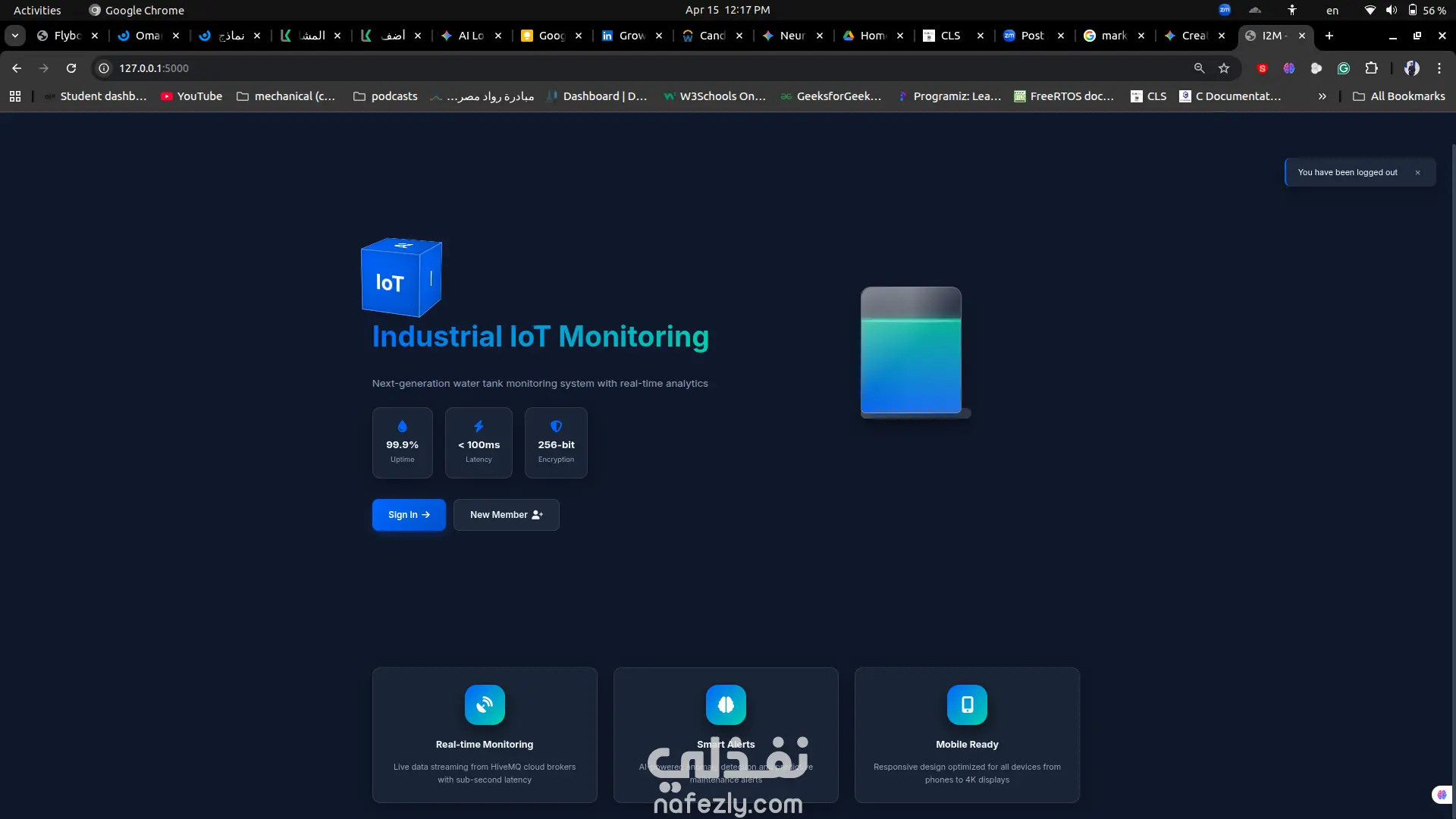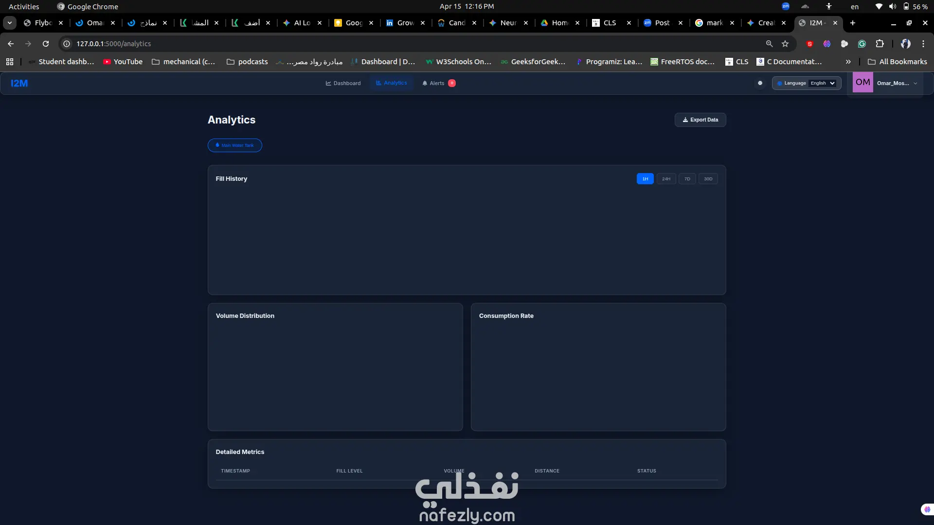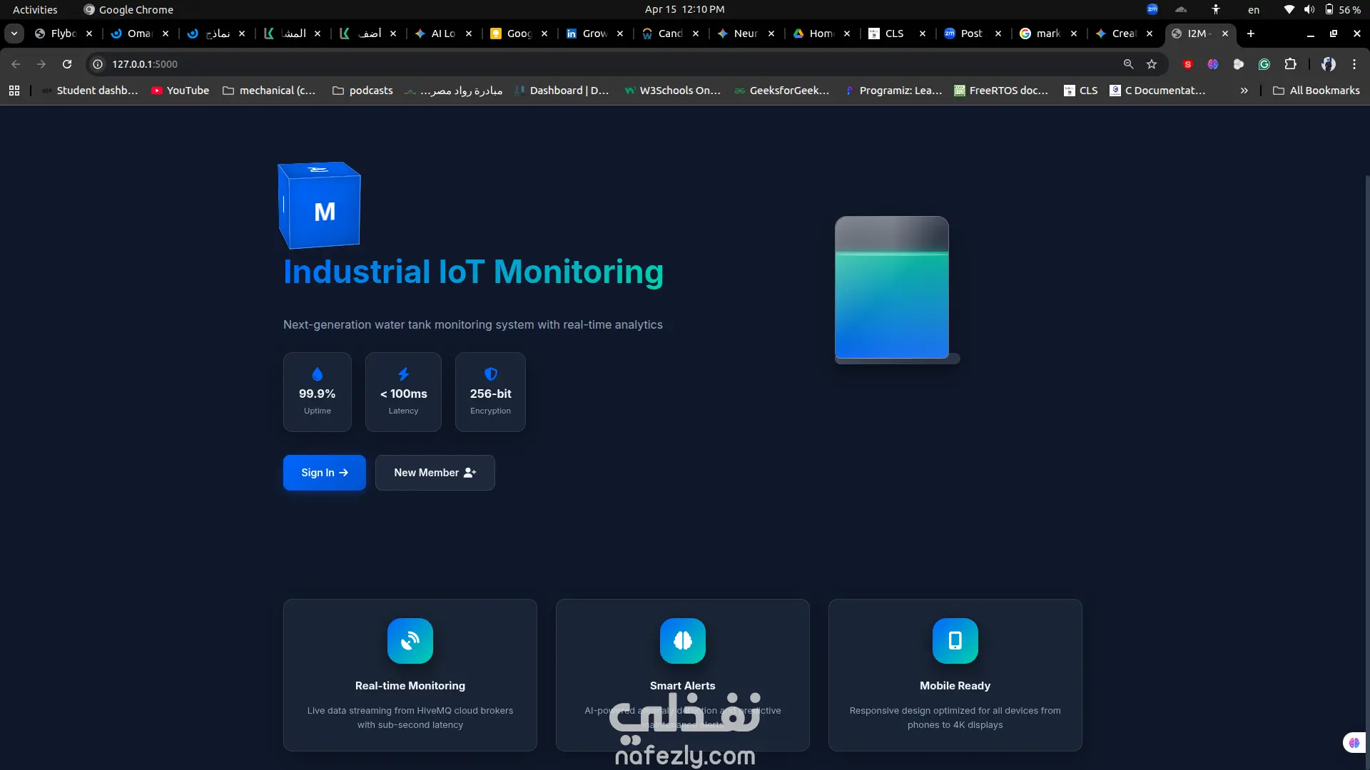 منصة ويب متكاملة تعتمد على إنترنت الأشياء (IoT) لمراقبة مستوى خزان المياه في الوقت الحقيقي باستخدام بروتوكول MQTT مع لوحة تحكم تفاعلية لعرض البيانات. يهدف المشروع إلى توفير نظام قابل للتوسع لإدارة عدة خزانات لمستخدمين مختلفين دون تعارض في البيانات، حيث يمتلك كل مستخدم ملفًا شخصيًا مستقلًا ويمكنه تسجيل أكثر من خزان وربطه عبر MQTT باستخدام Broker وTopic ومعرف الجهاز. بعد الاتصال، يستقبل النظام بيانات الحساسات مباشرة ويعرضها في لوحة تحكم حديثة تشمل نسبة الامتلاء، حجم المياه باللترات، وقياسات المسافة بالسنتيمتر مع تحديثات لحظية. يدعم النظام إدارة متعددة المستخدمين، تسجيل الأجهزة، مؤشرات حالة مباشرة، وتنبيهات عند المستويات الحرجة. تم تطوير المشروع باستخدام HTML وCSS وJavaScript وFlask مع Python وبروتوكول MQTT وبنية تخزين CSV خفيفة. يوضح المشروع قدرتي على بناء تطبيقات ويب مرتبطة بأجهزة IoT، أنظمة بيانات لحظية، ولوحات تحكم تفاعلية قابلة للتوسع للمنازل الذكية والزراعة والحلول الصناعية.