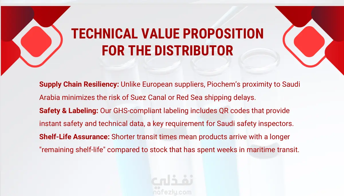 • إجراء تحليل أولي لسوق توزيع الكيماويات في المملكة العربية السعودية لتحديد الفرص المحتملة لدخول السوق.