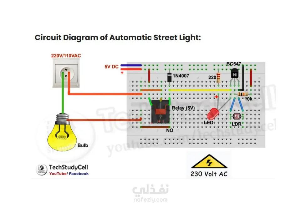 قمت بتنفيذ مشروع عملي في مجال الإلكترونيات والأنظمة الذكية يهدف إلى تصميم نظام إنارة شوارع يعمل بشكل أوتوماتيكي اعتمادًا على شدة الإضاءة في البيئة المحيطة.