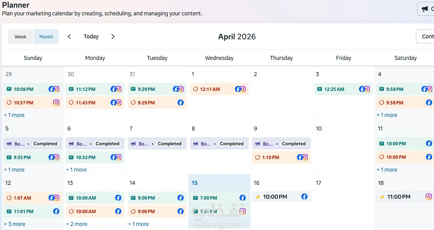 قمت بإعداد Content Planner شهري لتنظيم المحتوى على منصات السوشيال ميديا، مع تحديد مواعيد النشر وأنواع المحتوى بما يساعد على زيادة التفاعل وتحسين أداء الصفحة. يشمل العمل: تنظيم المحتوى الشهري تحديد مواعيد النشر توزيع أنواع المحتوى إدارة النشر على Facebook و Instagram تحسين التفاعل مع الجمهور
