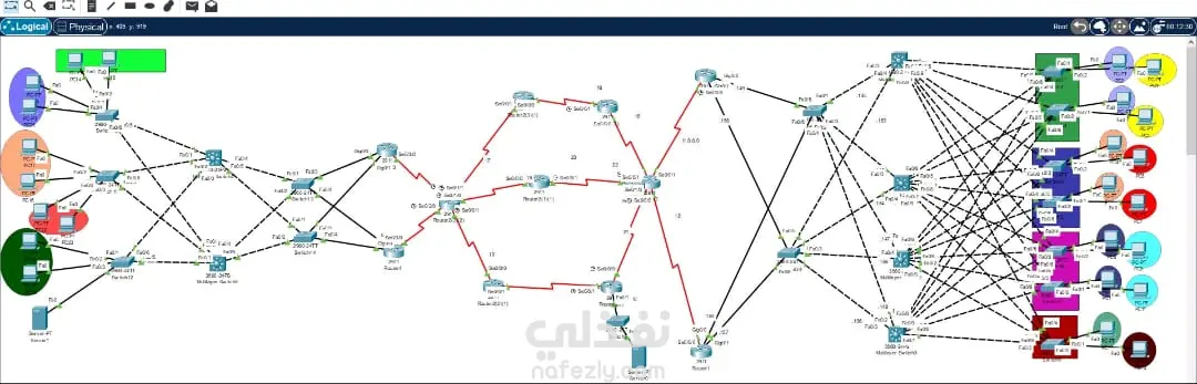 network includes VLAN segmentation and Layer 2 security to improve performance and protect internal resources. Inter-branch communication is established through tunneling with full internet access. Dynamic routing is implemented using OSPF and RIP to ensure efficient and reliable data exchange between network segments. High availability mechanisms are also configured to provide seamless failover and maintain network stability. Additionally, DHCP is deployed for automated IP address management across the network. Overall, the project focuses on building a secure, resilient, and well-structured network infrastructure.