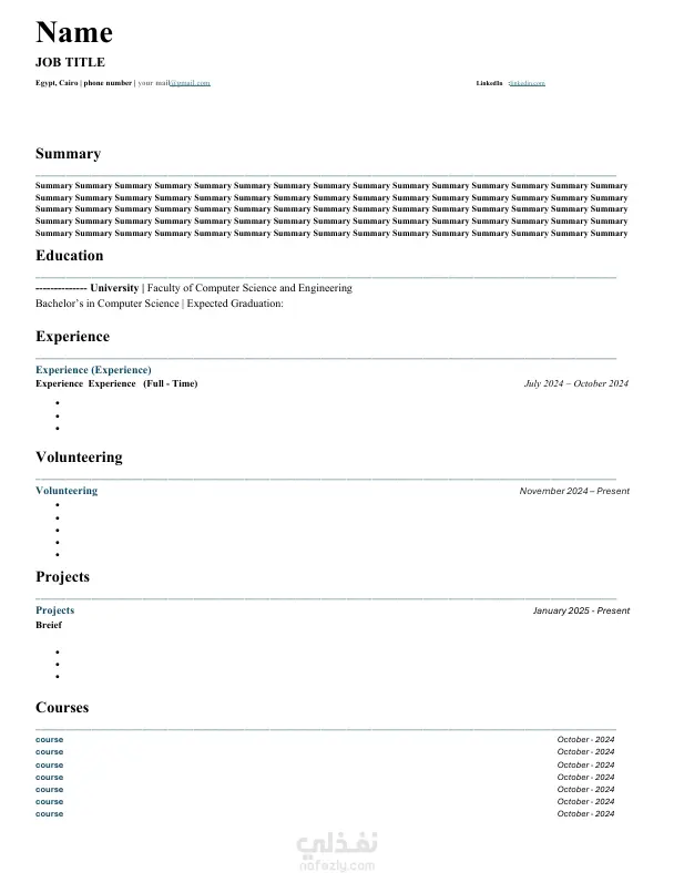 تصميم سيرة ذاتية (CV) احترافي بنظام الـ ATS - نموذج عصري