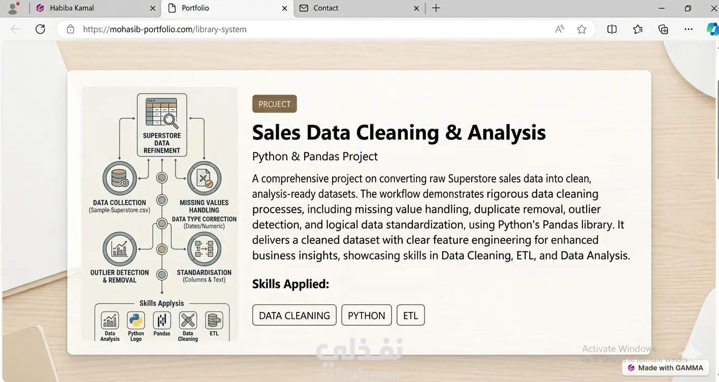 مشروع احترافي يهدف إلى تحويل البيانات الخام (Raw Data) لمتجر "Superstore" إلى بيانات مهيأة للتحليل عبر عملية تنظيف شاملة باستخدام لغة Python. الخطوات التقنية التي تم تنفيذها: Data Cleaning: معالجة القيم المفقودة (Null values)، إزالة التكرارات، وتصحيح أنواع البيانات (Data Types). Outliers Detection: تحديد القيم الشاذة في المبيعات والأرباح والتعامل معها لضمان دقة النتائج. Standardization: توحيد صيغ النصوص والتواريخ لتسهيل عمليات الربط والبحث. Feature Engineering: إنشاء أعمدة جديدة (مثل حساب مدة الشحن أو تصنيف العملاء) لزيادة عمق التحليل. المخرجات: تم تسليم ملف بيانات نظيف (CSV) وسكربت Python منظم يسهل إعادة استخدامه مع بيانات مشابهة.