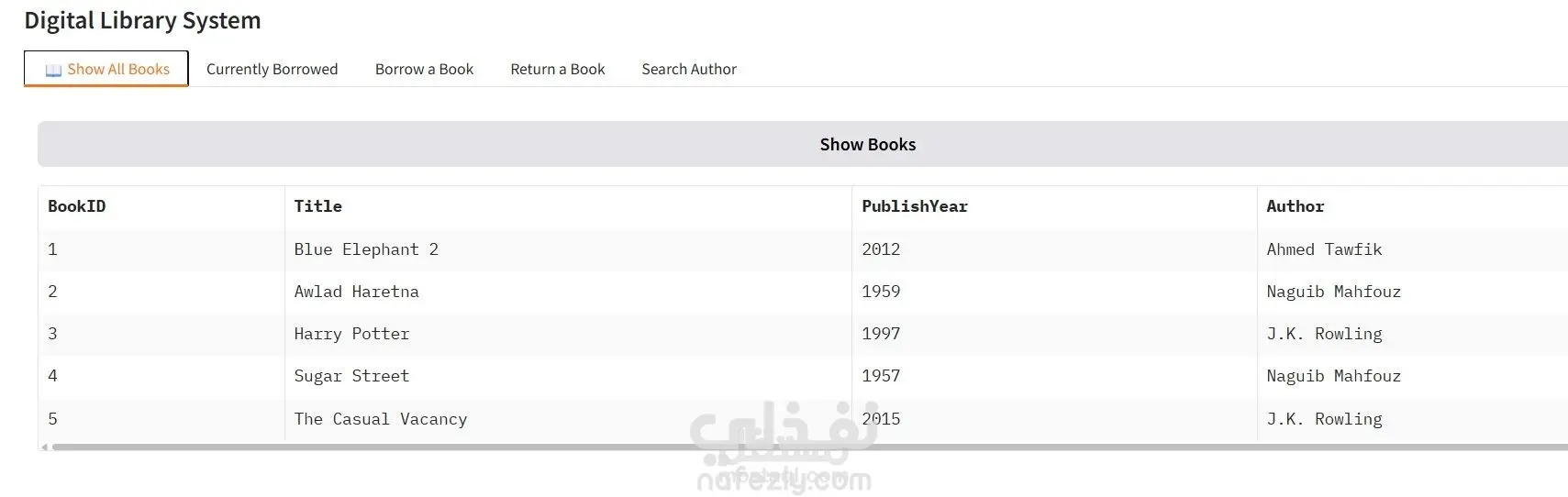 * Use of SQL aggregate queries (e.g., most borrowed author, currently borrowed books)