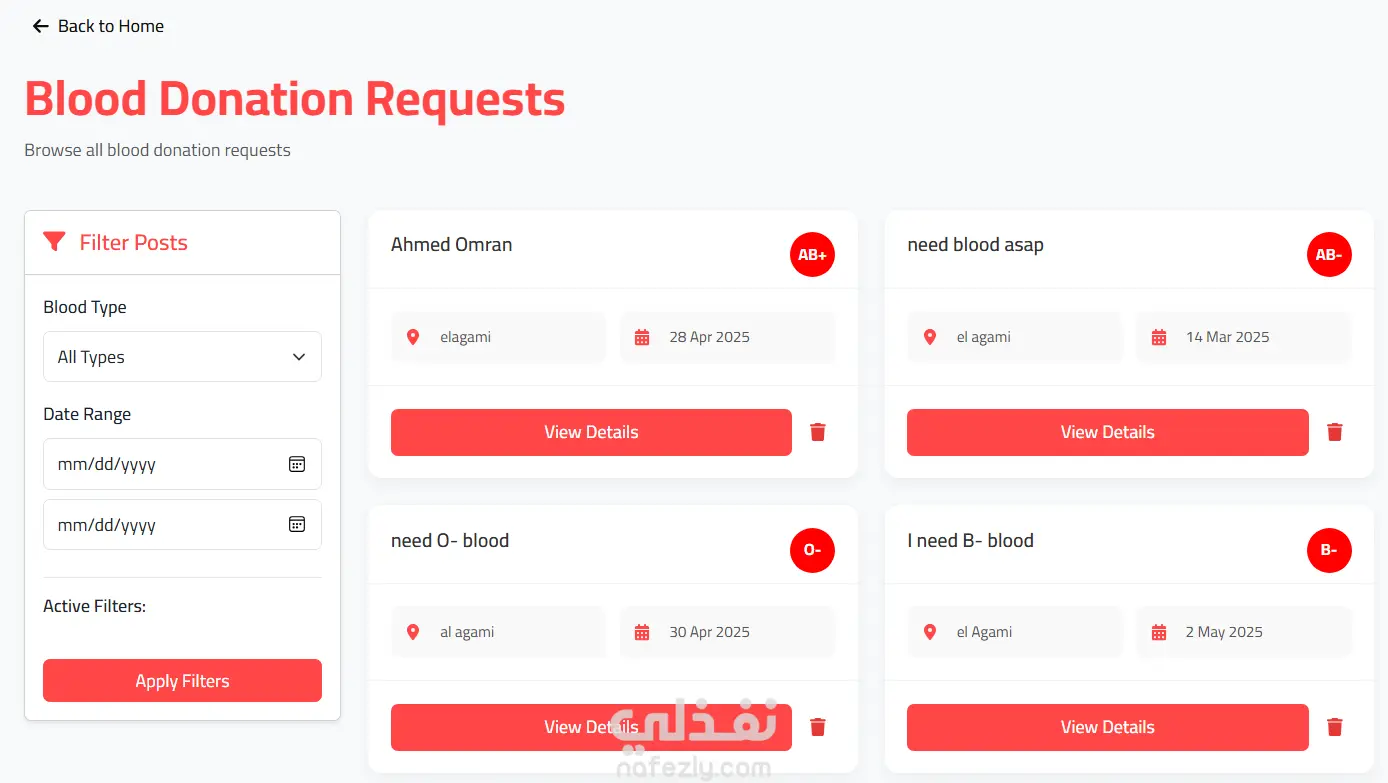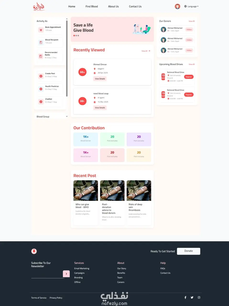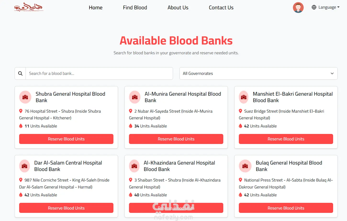 نظام إدارة بنك الدم نظام متكامل لإدارة بنوك الدم يهدف إلى تنظيم عمليات التبرع، إدارة المخزون، وتتبع أكياس الدم بكفاءة عالية، مع توفير لوحة تحكم سهلة الاستخدام لإدارة جميع العمليات. تم تطوير النظام باستخدام ASP.NET Core مع تطبيق أفضل الممارسات في تصميم البرمجيات لضمان الأداء العالي وقابلية التوسع. مميزات النظام إدارة بيانات المتبرعين (الاسم، فصيلة الدم، تاريخ التبرع، البيانات الشخصية) تتبع أكياس الدم والبلازما مع تواريخ الصلاحية والأسعار إدارة مخزون كل فرع بشكل منفصل تسجيل عمليات التبرع وسجل تاريخي كامل لكل متبرع إنشاء فواتير لعمليات الشراء نظام حجز/طلب أكياس الدم نقل المخزون بين الفروع مع تسجيل العمليات لوحة تحكم (Dashboard) لمتابعة الإحصائيات والتقارير نظام الصلاحيات Super Admin: إدارة النظام بالكامل Admin: إدارة الفرع والمخزون User / Employee: تنفيذ العمليات اليومية التقنيات المستخدمة ASP.NET Core Web API Entity Framework Core (Code First) SQL Server JWT Authentication SignalR للتحديثات اللحظية الهدف من المشروع تحسين كفاءة إدارة بنوك الدم، تقليل الأخطاء البشرية، وتوفير نظام رقمي يساعد في متابعة المخزون والطلبات بشكل دقيق وسريع.