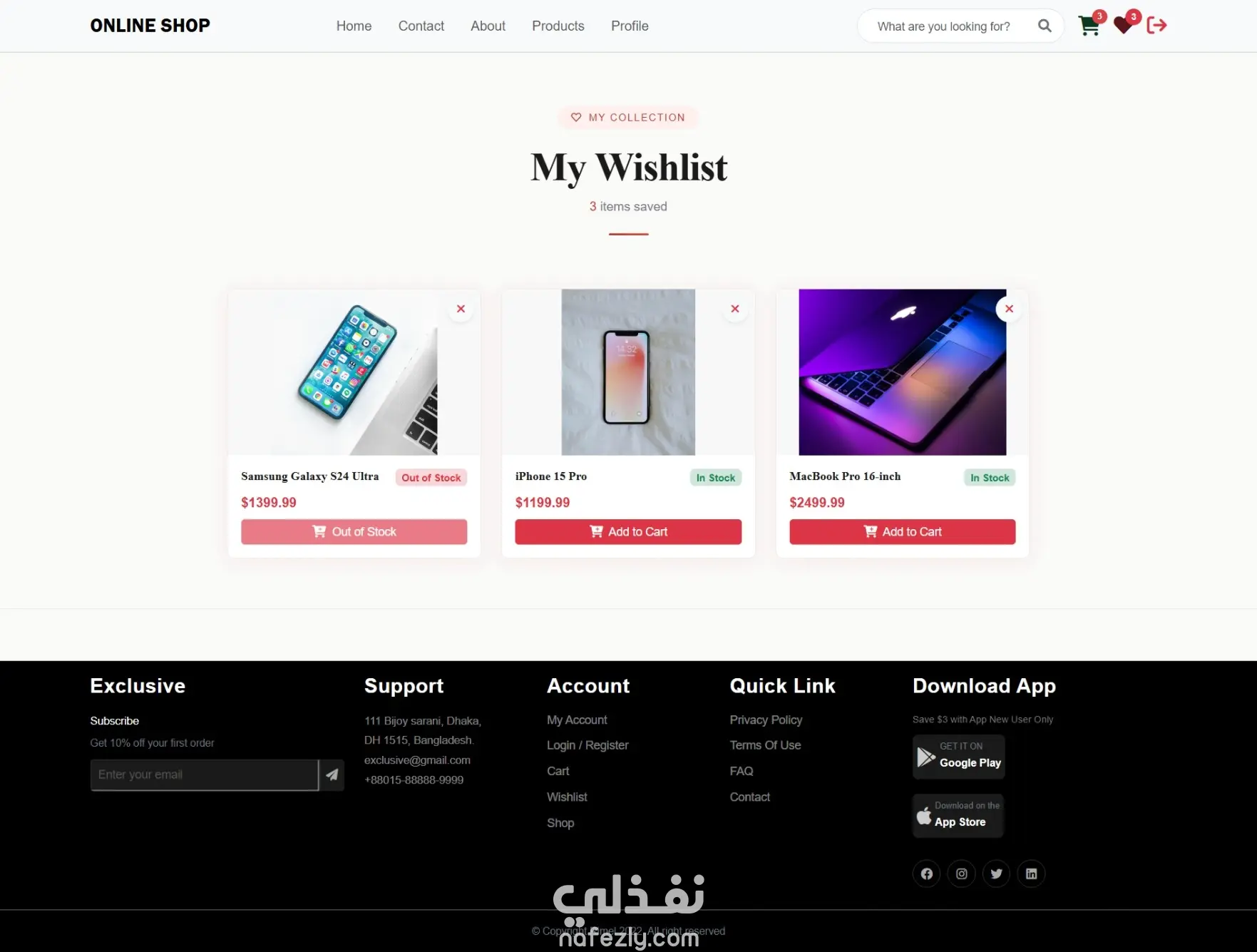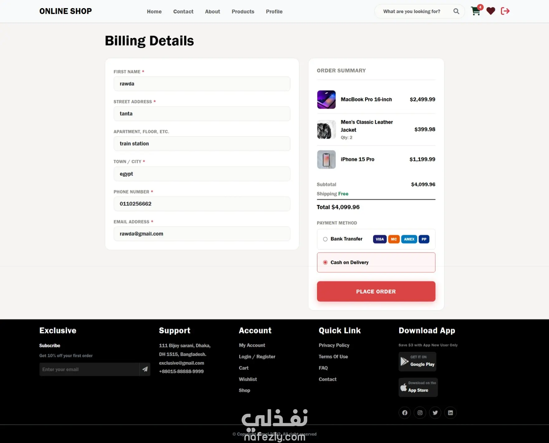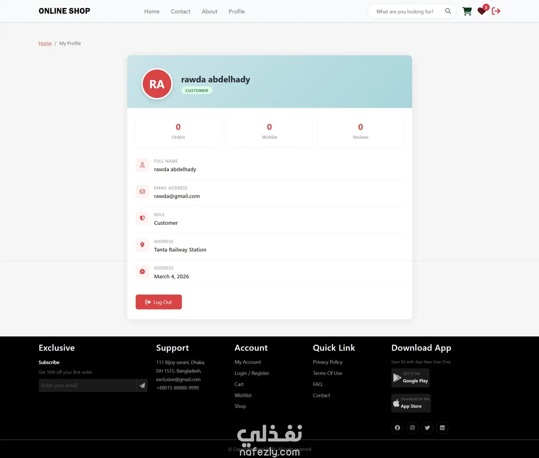 مشروع متجر إلكتروني (Online Shop) تم تطويره باستخدام HTML وCSS وJavaScript، يهدف إلى محاكاة تجربة تسوق حقيقية من خلال واجهة مستخدم تفاعلية وسهلة الاستخدام. يتيح المشروع للمستخدم تصفح المنتجات، إضافتها إلى السلة (Cart) مع إمكانية تعديل الكميات وحساب الإجمالي بشكل ديناميكي، بالإضافة إلى حفظ المنتجات المفضلة في قائمة (Wishlist). كما يتضمن عملية Checkout تجريبية تشمل إدخال بيانات المستخدم وعرض ملخص الطلب قبل إتمامه، مع استخدام Local Storage لحفظ البيانات وتحديث الواجهة بدون إعادة تحميل الصفحة.