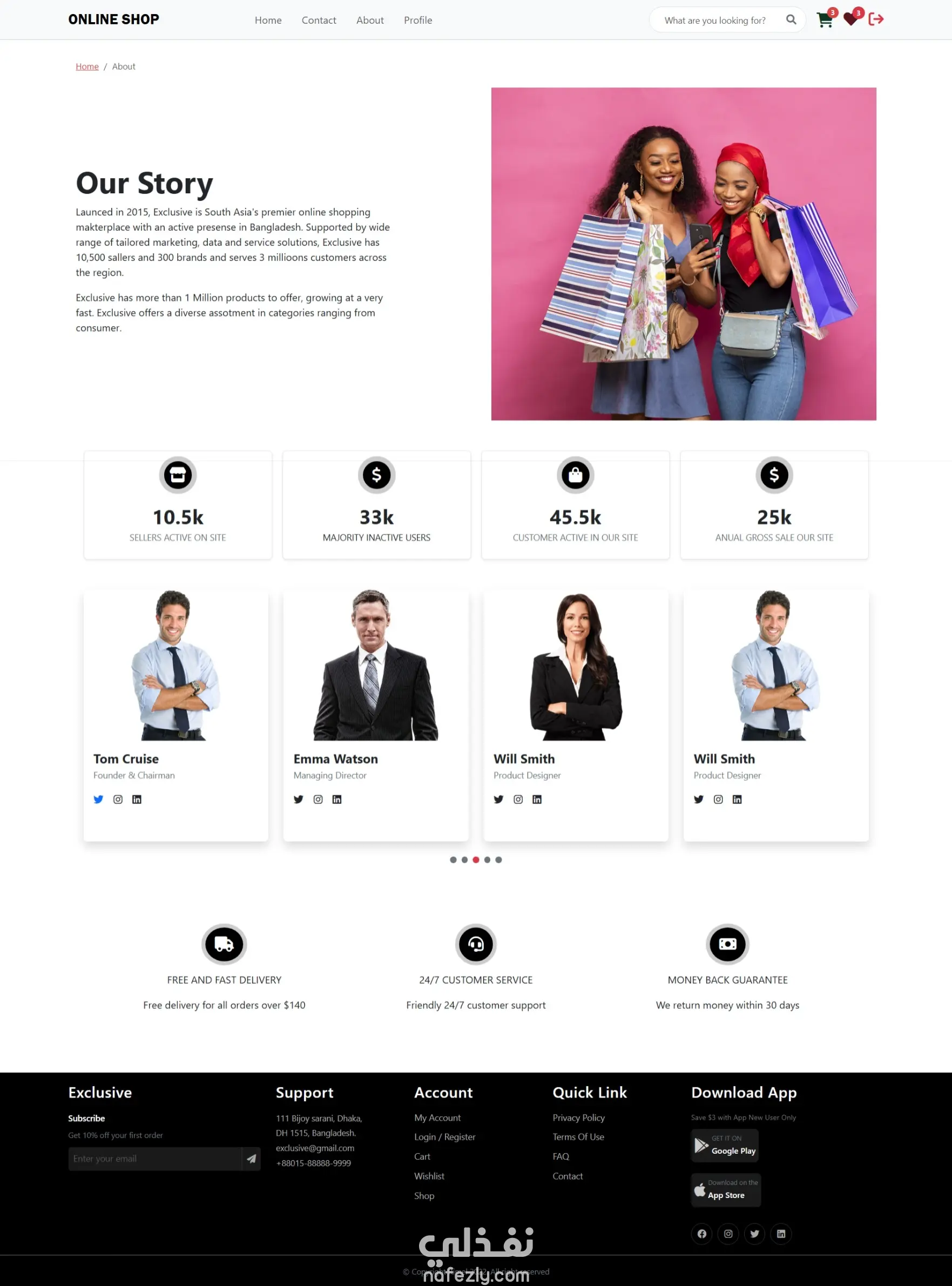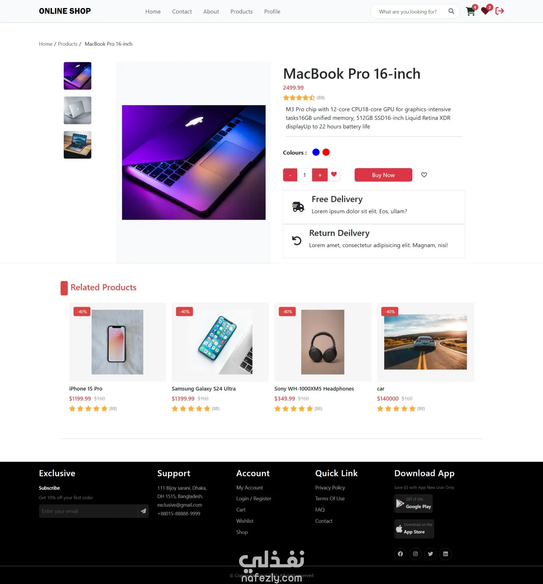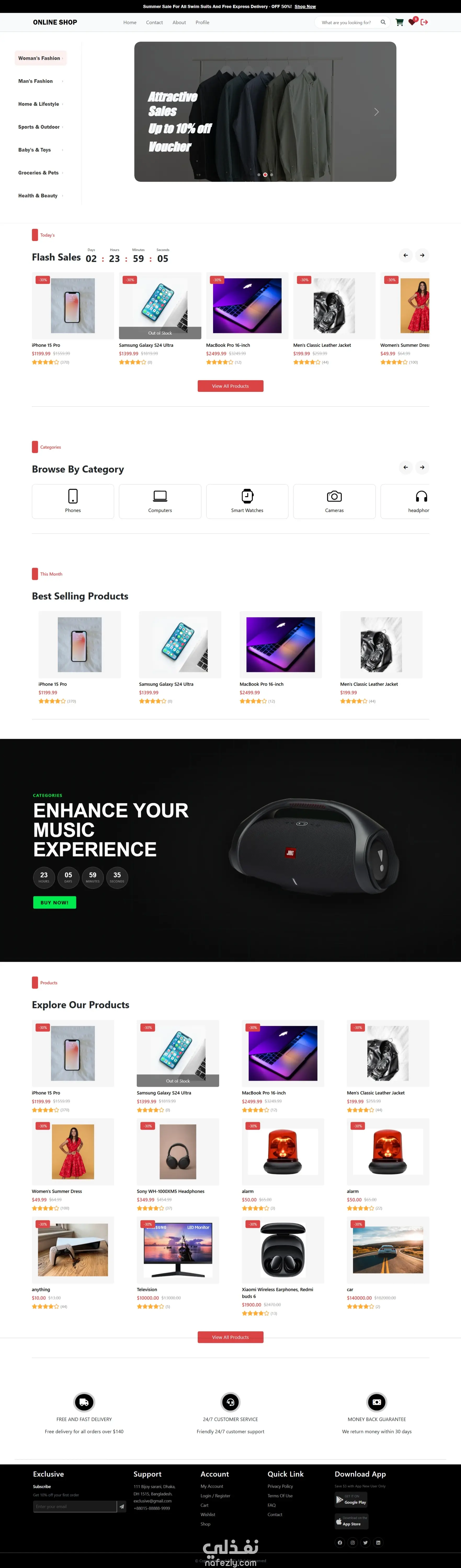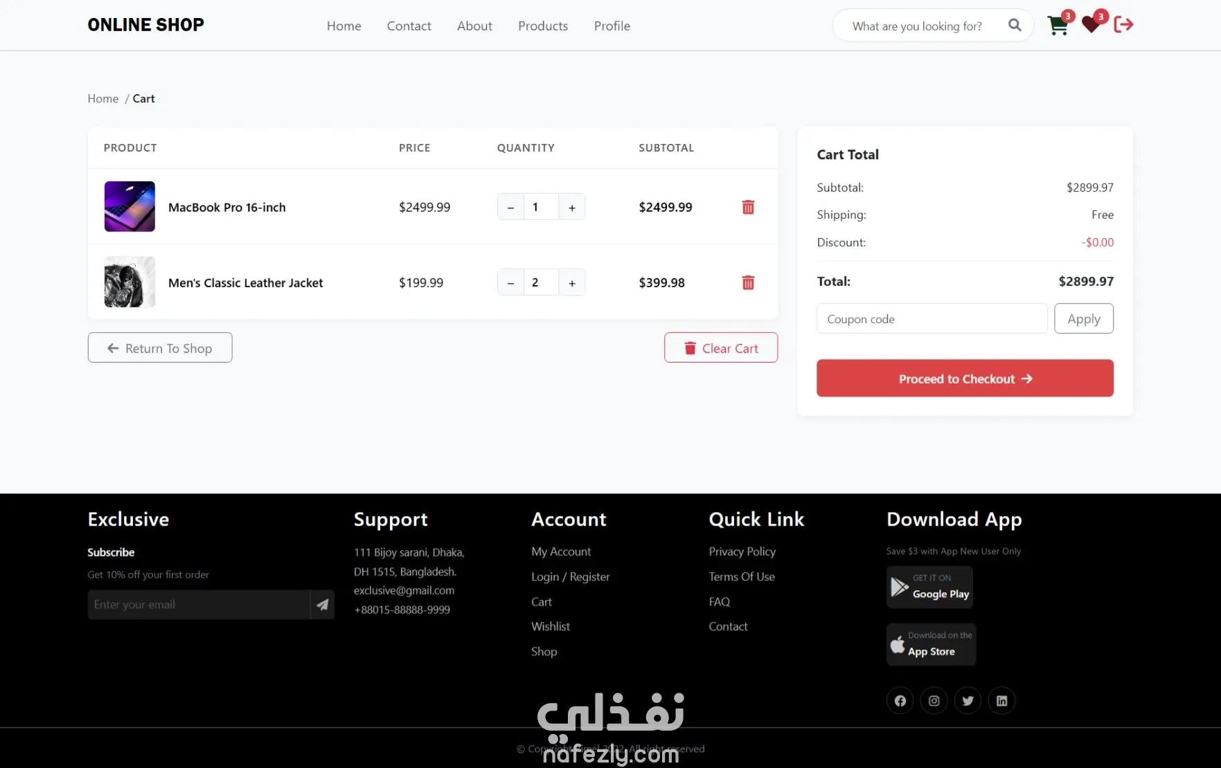 مشروع متجر إلكتروني (Online Shop) تم تطويره باستخدام HTML وCSS وJavaScript، يهدف إلى محاكاة تجربة تسوق حقيقية من خلال واجهة مستخدم تفاعلية وسهلة الاستخدام. يتيح المشروع للمستخدم تصفح المنتجات، إضافتها إلى السلة (Cart) مع إمكانية تعديل الكميات وحساب الإجمالي بشكل ديناميكي، بالإضافة إلى حفظ المنتجات المفضلة في قائمة (Wishlist). كما يتضمن عملية Checkout تجريبية تشمل إدخال بيانات المستخدم وعرض ملخص الطلب قبل إتمامه، مع استخدام Local Storage لحفظ البيانات وتحديث الواجهة بدون إعادة تحميل الصفحة.