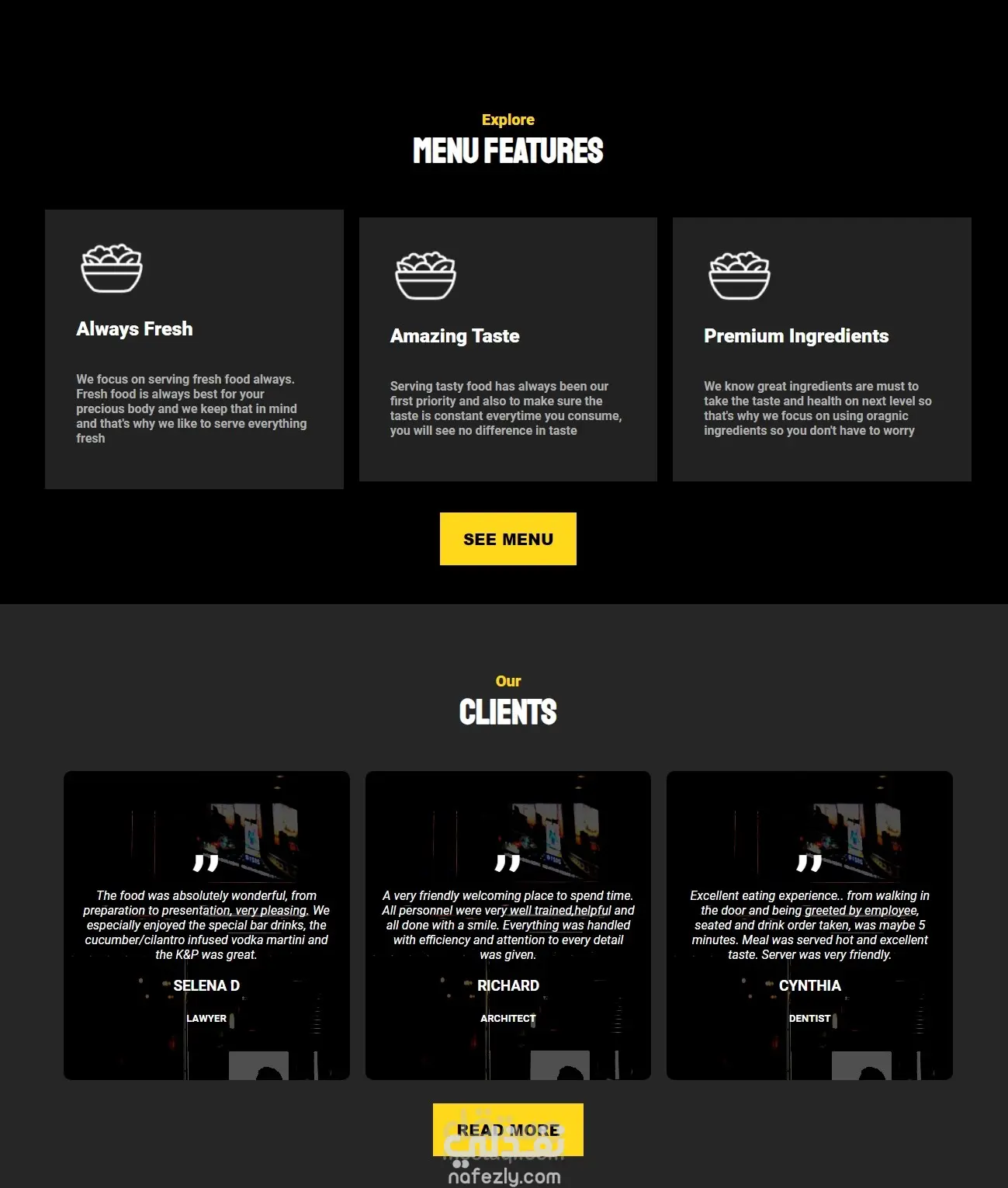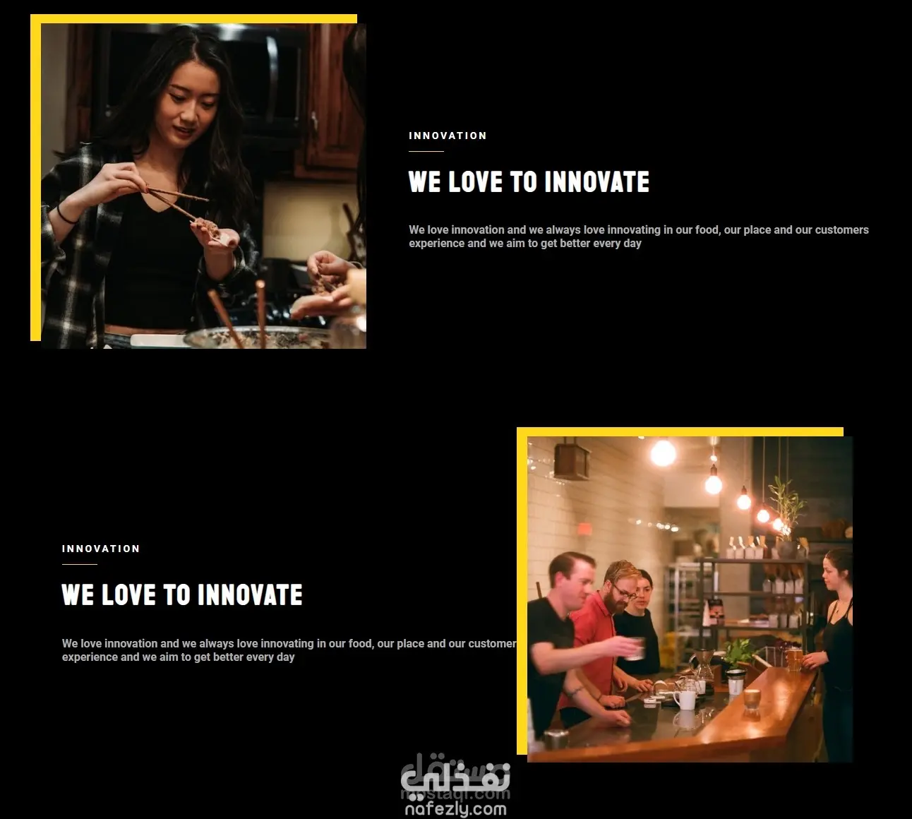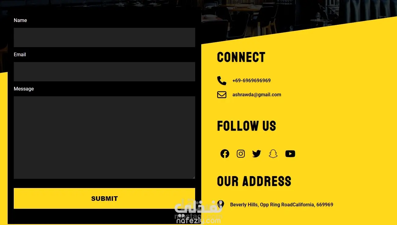 أقوم بتقديم قالب موقع مطعم عصري ومتجاوب بالكامل، تم تصميمه ليمنح حضورًا إلكترونيًا أنيقًا وسهل الاستخدام للمطاعم والكافيهات أو أي نشاط متعلق بالطعام.