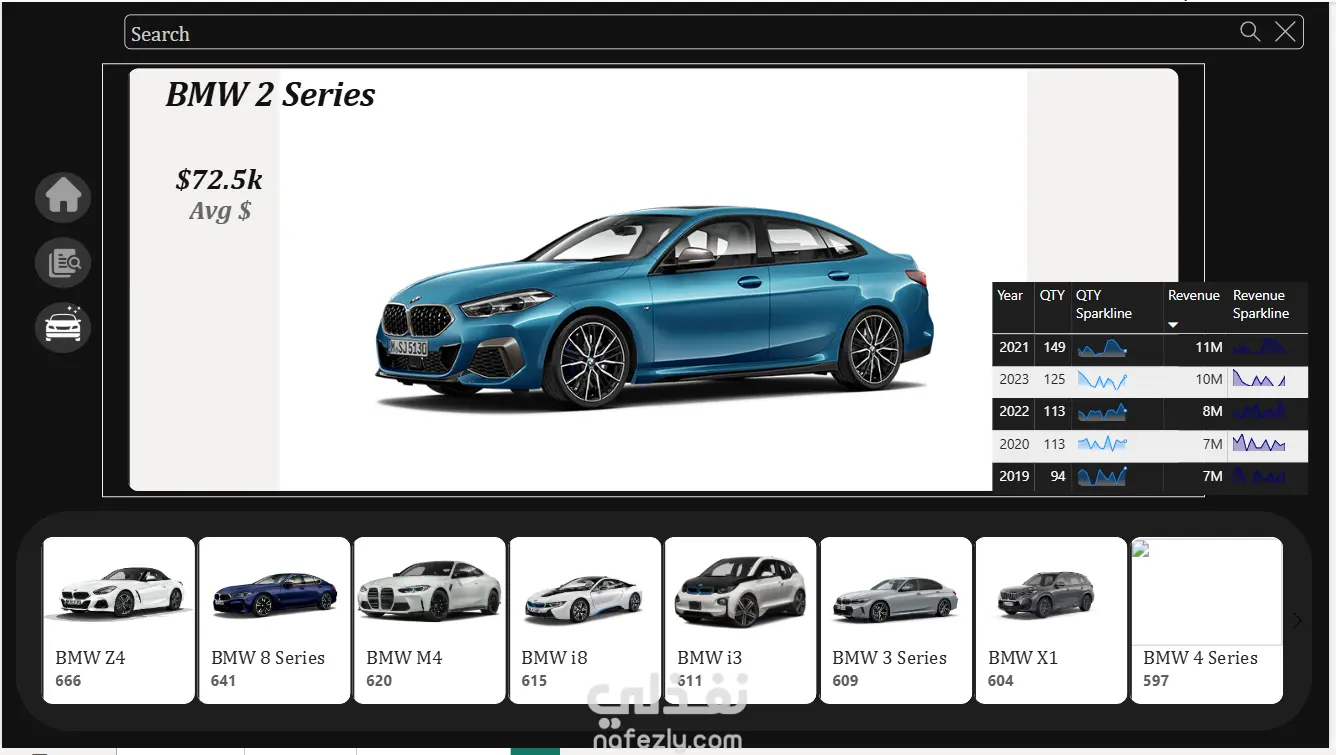 - صفحة تفصيلية للمنتج: إمكانية الانتقال لعرض مواصفات موديل محدد (مثل BMW 2 Series) مع عرض بياناته التاريخية بشكل منفصل.