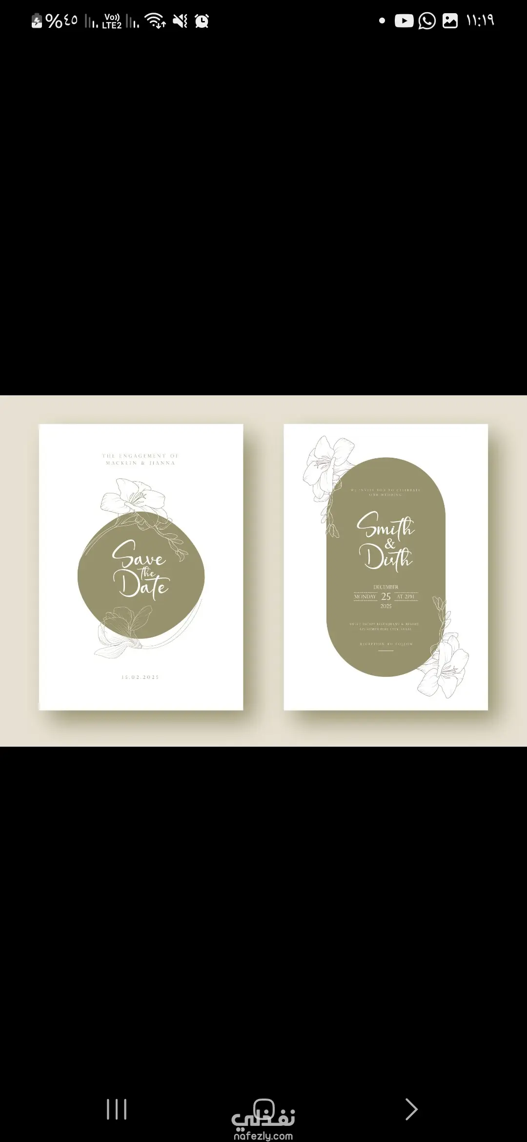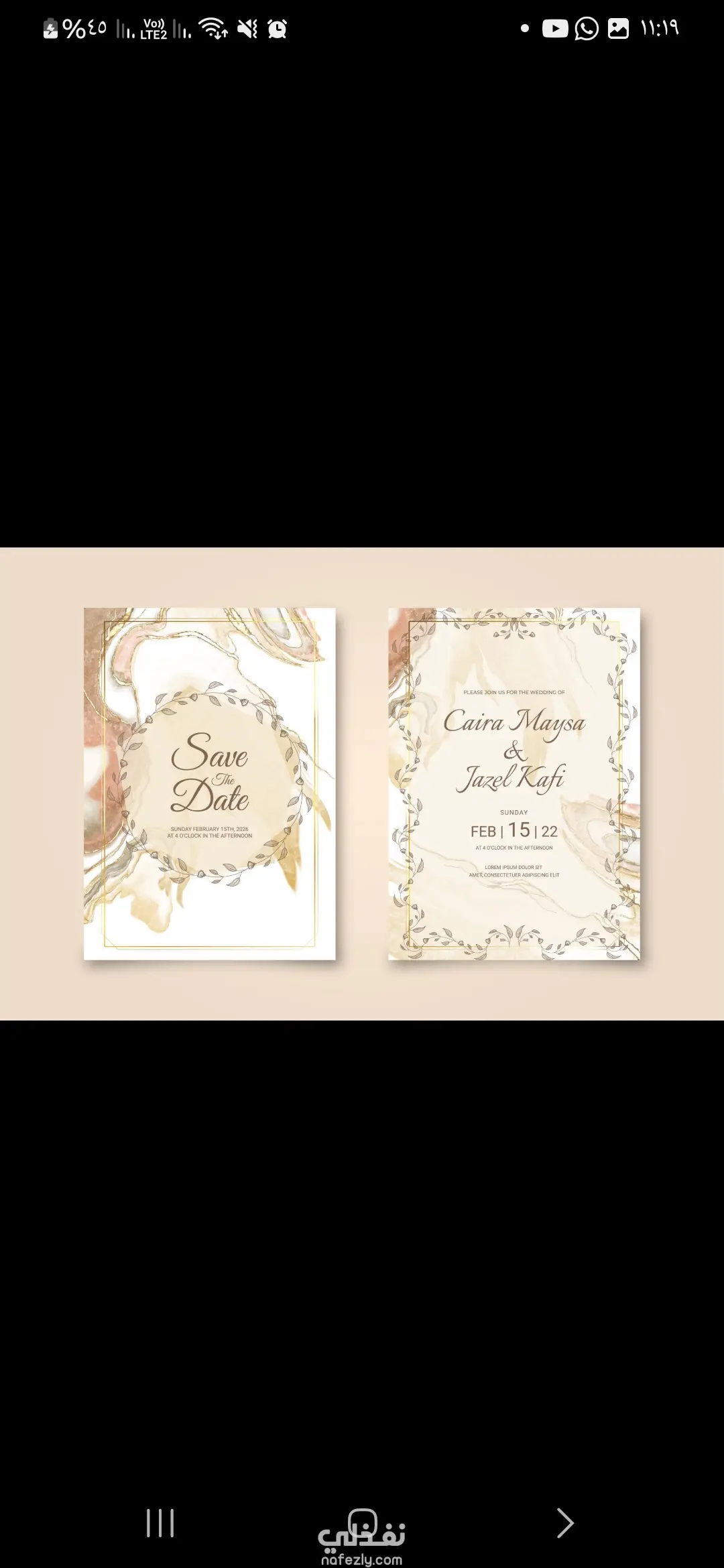 لو حابة، أعملك نسخة جاهزة بالنصوص بتاعتك وأسماءكم ومكان الفرح بحيث تبقى Unique 100% 👰🤵