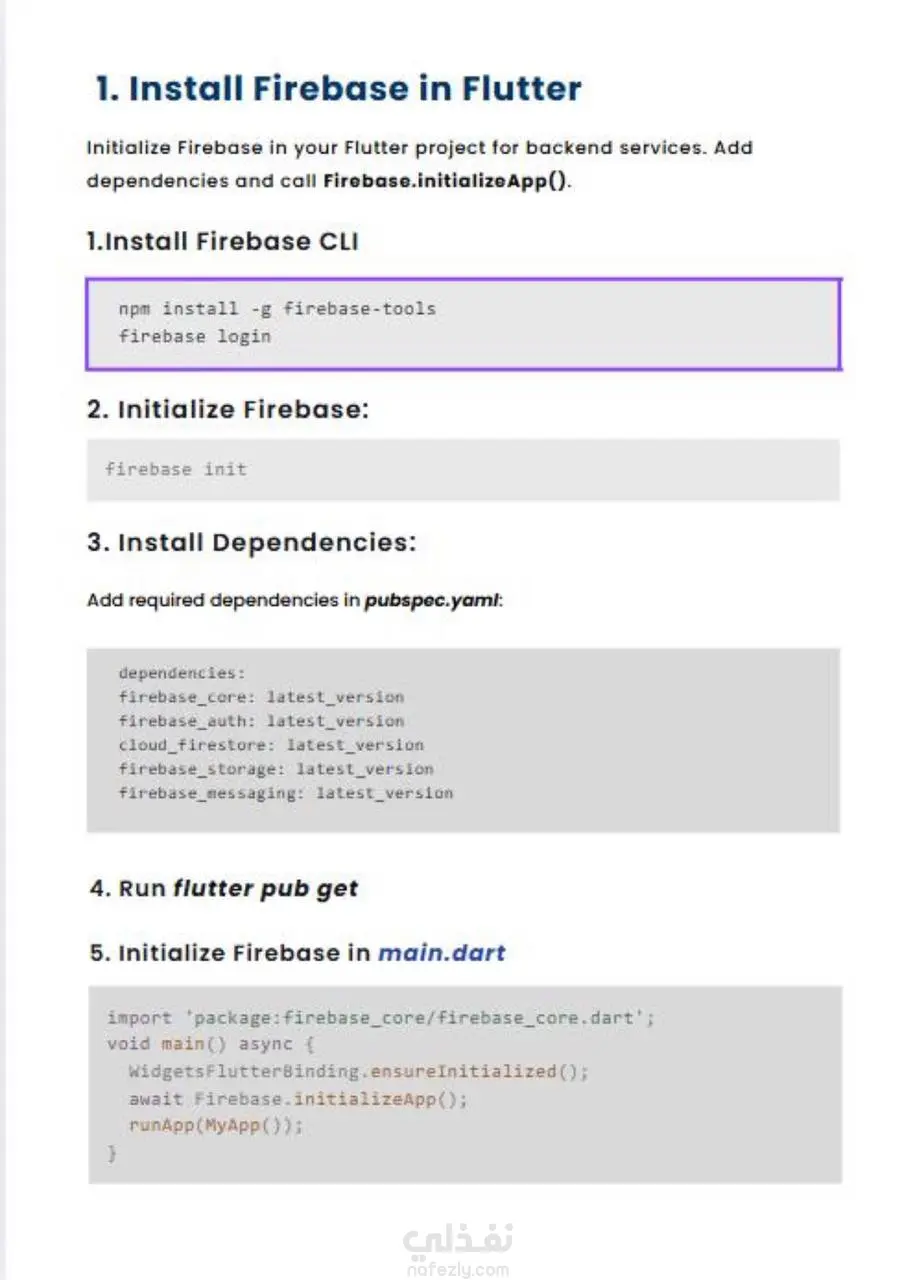 · إعداد مشروع Firebase جديد وربطه بالتطبيق. · إضافة نظام تسجيل دخول كامل (Email/Password أو Google Sign-In). · ربط التطبيق بـ Cloud Firestore لتخزين واسترجاع البيانات. · إنشاء 3 مجاميع بيانات (Collections) على الأقل حسب احتياجك. · إضافة صفحة بروفايل للمستخدم تعرض بياناته وتسمح بتعديلها. · عرض بيانات حية من Firebase مع تحديث تلقائي (Real-time updates). · إضافة شاشة تحميل (Loading) أثناء جلب البيانات. · غير شامل: إشعارات Push أو رفع التطبيق على المتاجر.