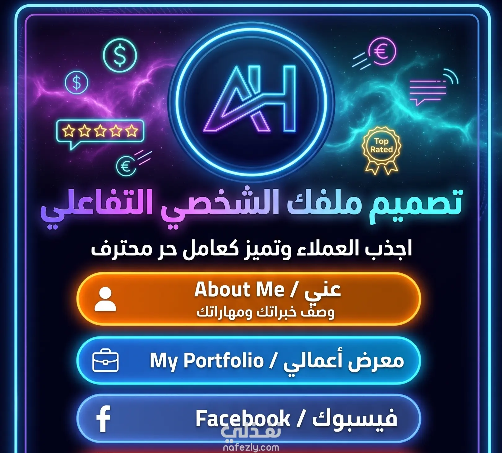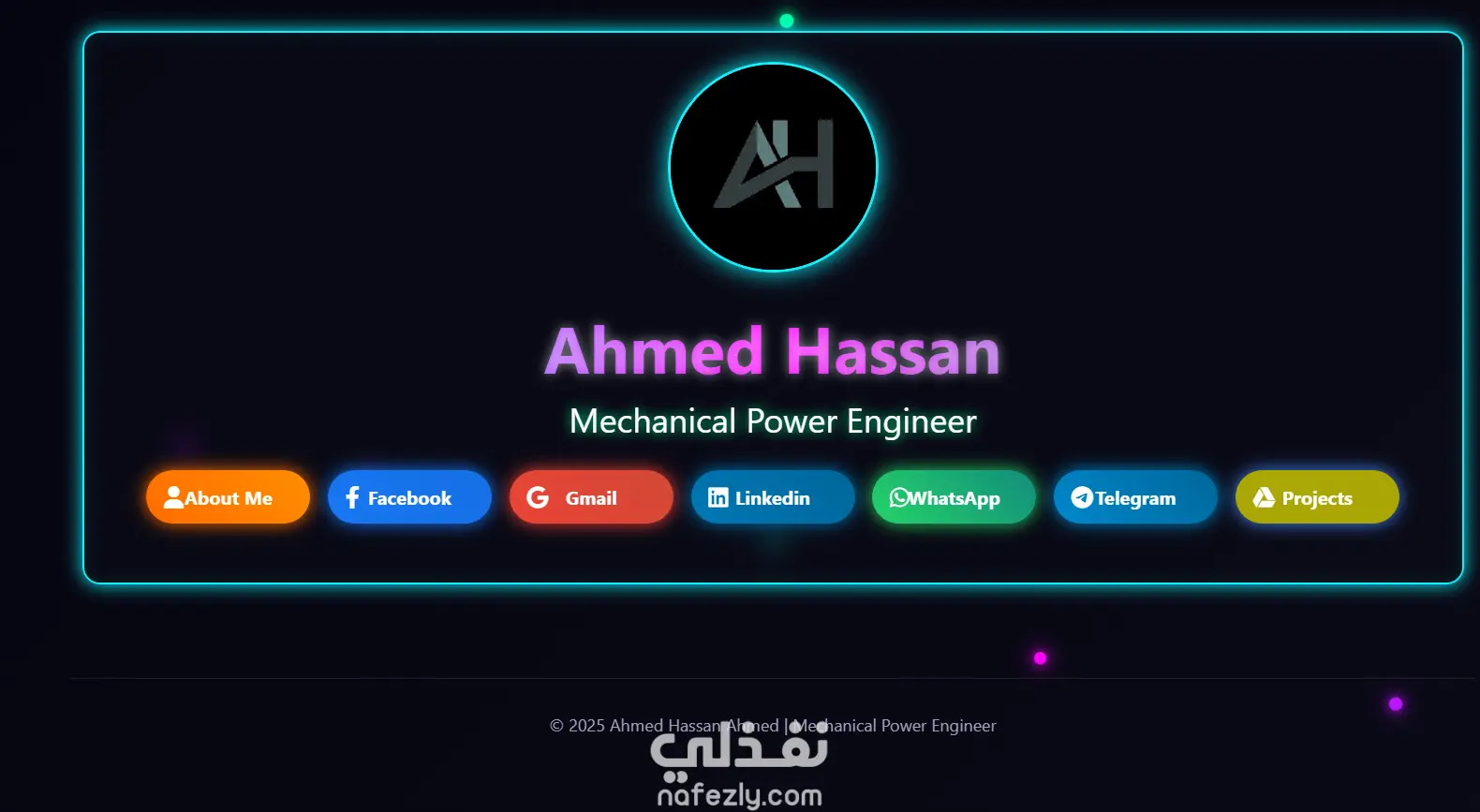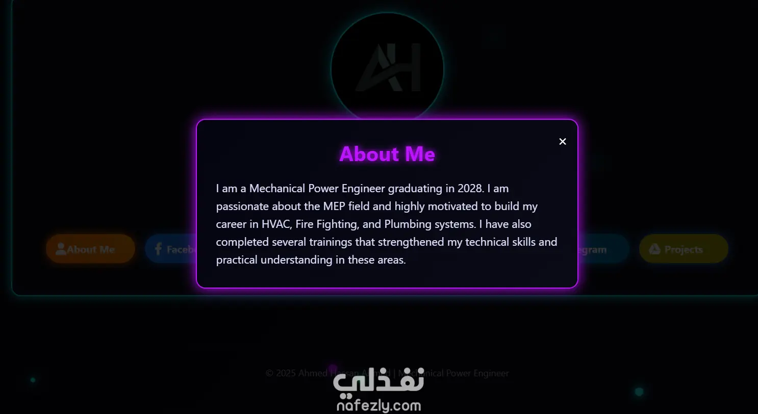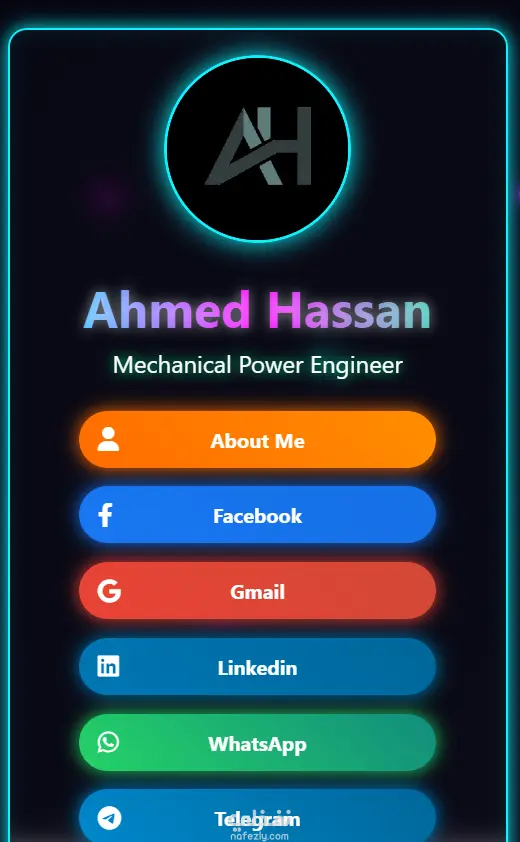 نموذج تطبيقي لصفحة شخصية تفاعلية على الويب، صُممت لتكون البديل العصري والأكثر احترافية للبطاقات الشخصية التقليدية أو خدمات تجميع الروابط.