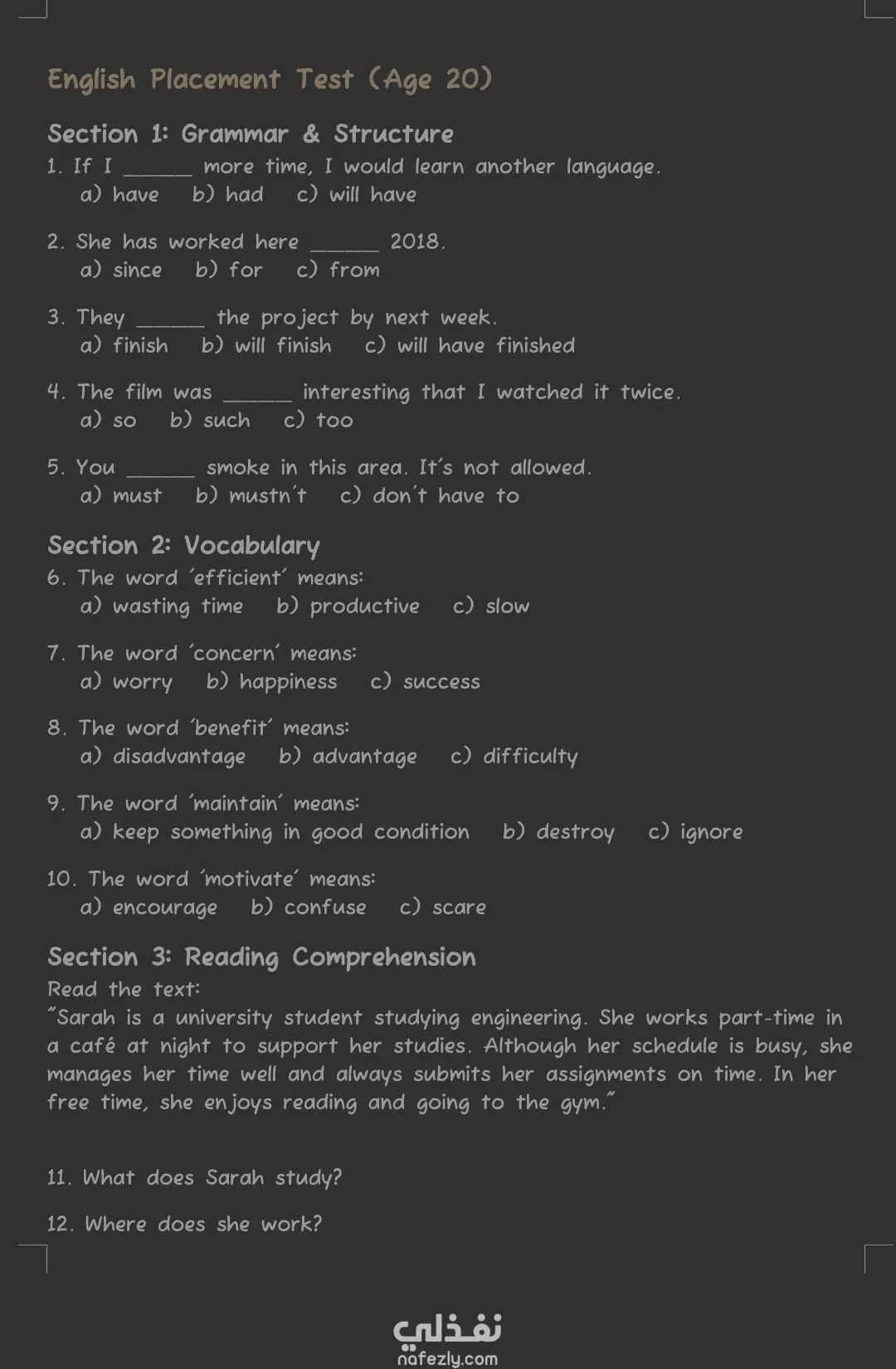 اقوم بعمل اختبارات في مادة اللغة الإنجليزية و تحويلها إلى pdf