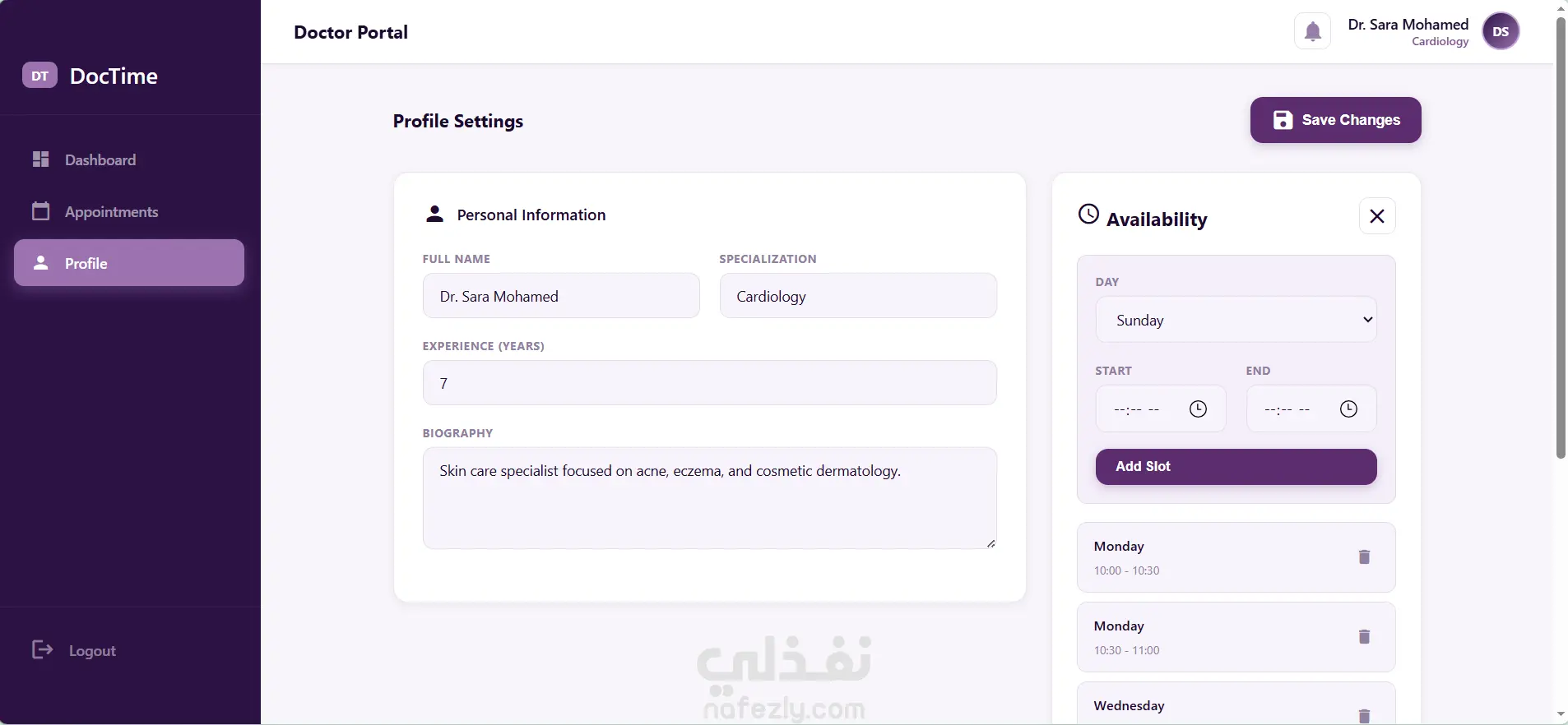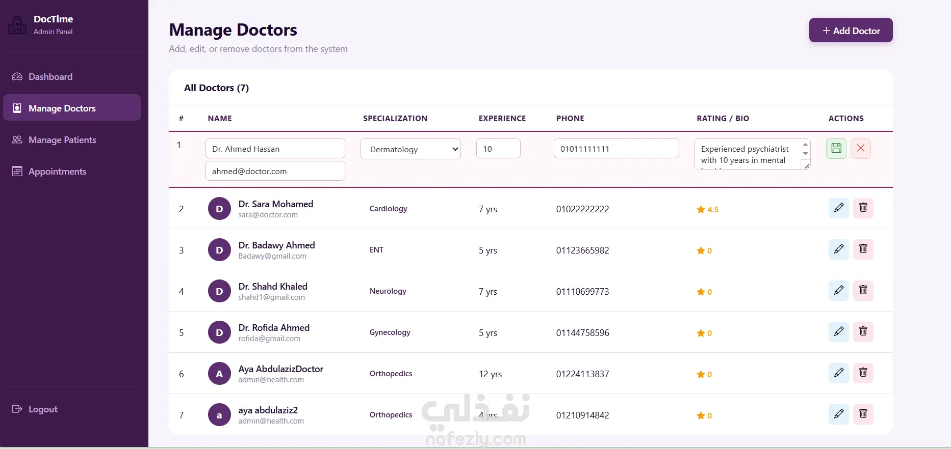 قمت بتطوير نظام متكامل لحجز المواعيد الطبية باستخدام Angular و json-server، يدعم ثلاثة أنواع من المستخدمين: مريض، طبيب، وأدمن. يتيح النظام تسجيل الدخول وإنشاء الحسابات، استعراض الأطباء والبحث عنهم حسب التخصص، وحجز المواعيد بسهولة. يتضمن المشروع إدارة كاملة للمواعيد والسجلات الطبية والوصفات العلاجية، مع تطبيق نظام صلاحيات (Role-Based Access) باستخدام Guards و Interceptors، بالإضافة إلى تنفيذ عمليات CRUD كاملة وتصميم واجهة متجاوبة تعمل على مختلف الأجهزة.