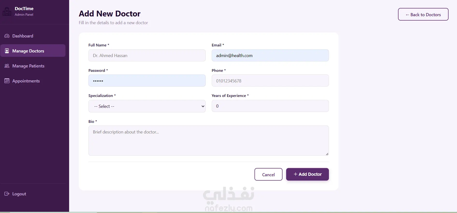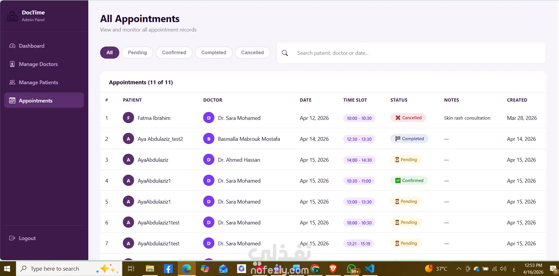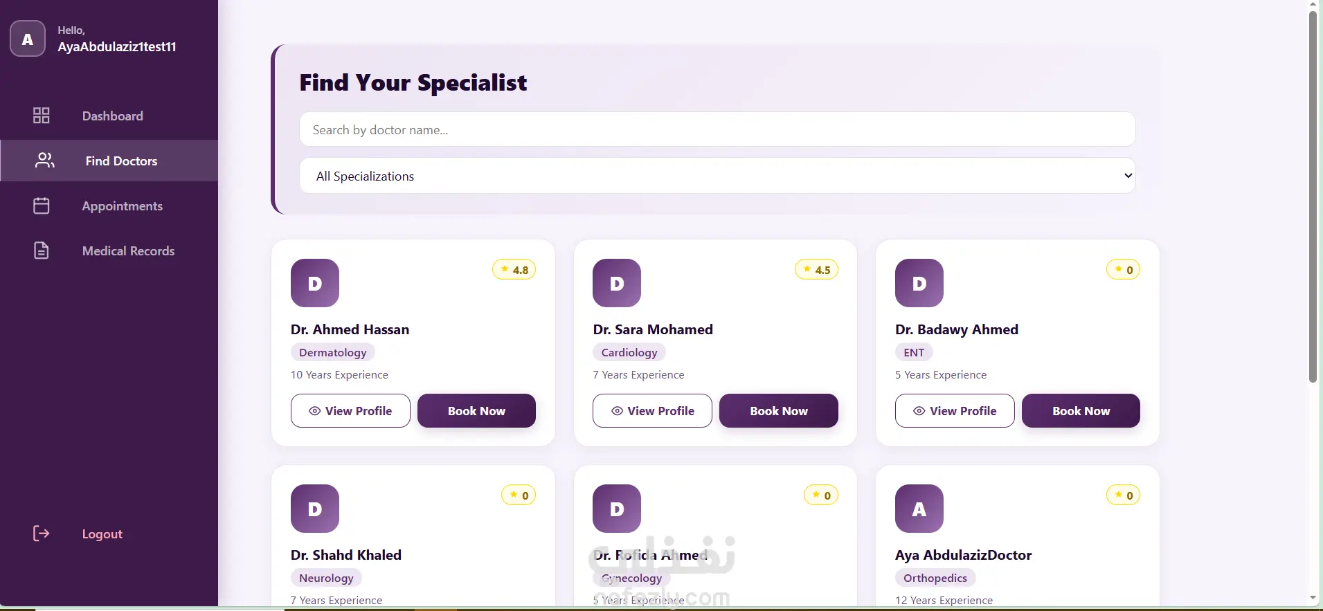نظام حجز المواعيد الطبية (Angular)