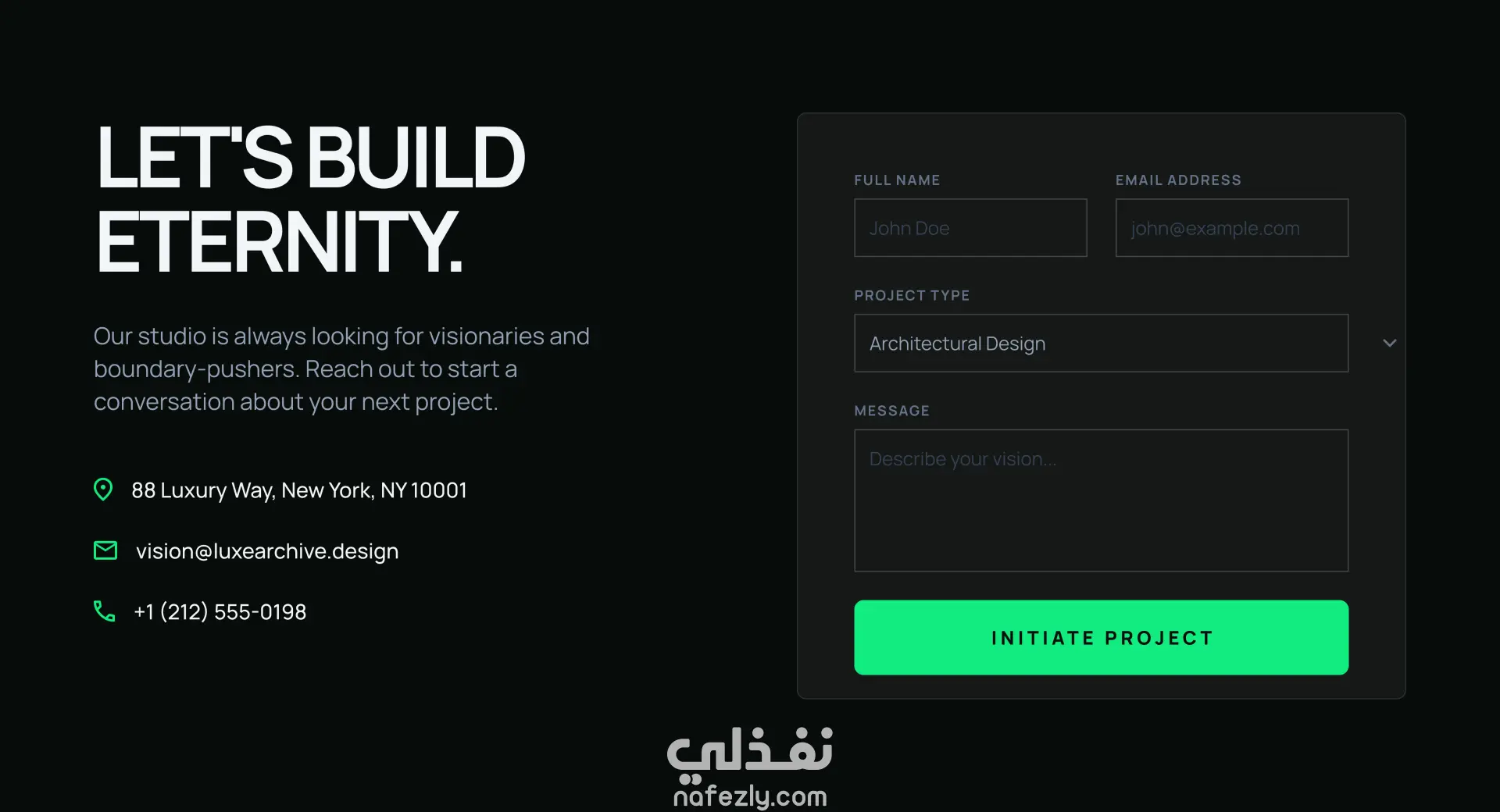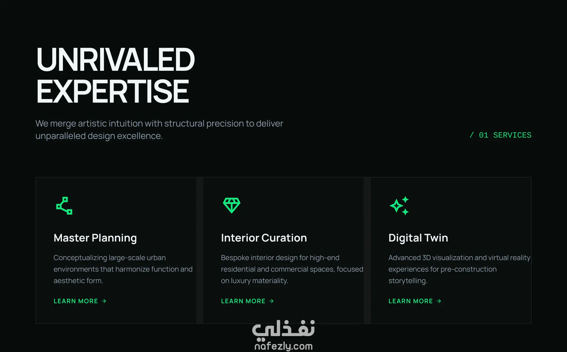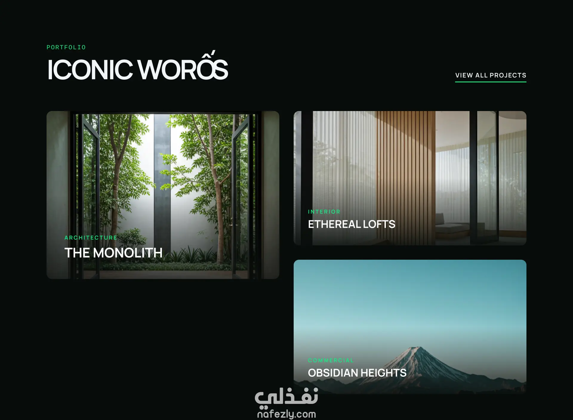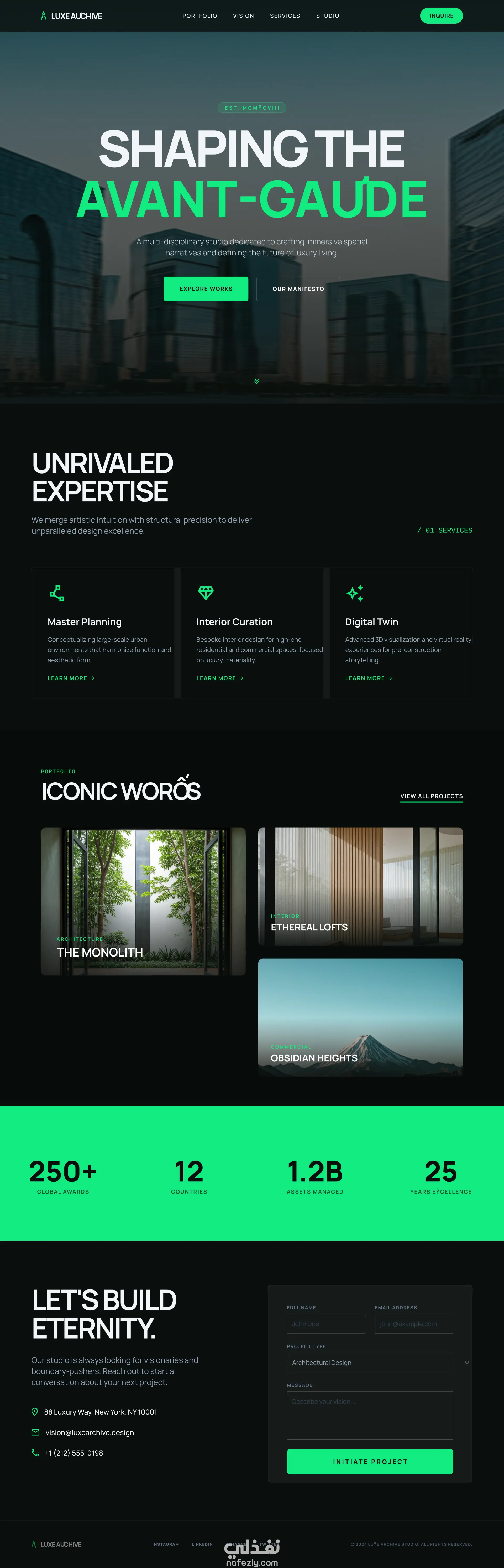 يمثل هذا المشروع تصميم واجهة رقمية لاستوديو متعدد التخصصات (Multi-disciplinary Studio)، متخصص في صياغة "السرديات المكانية الغامرة" وتشكيل مستقبل المعيشة الفاخرة. يهدف التصميم إلى تحقيق توازن دقيق بين الحدس الفني والدقة الهيكلية، بما يقدّم تجربة بصرية متكاملة تعكس الفخامة والحداثة في آنٍ واحد. التوجه التصميمي والفلسفة يرتكز التصميم على مفهوم "Shaping the Avant-Garde"، حيث يعكس الموقع فلسفة الاستوديو في تحويل المساحات إلى قصص بصرية ملموسة. وقد تم التركيز على المحاور التالية: التخطيط الرئيسي (Master Planning): تصميم واجهات تستعرض البيئات الحضرية واسعة النطاق بأسلوب يجمع بين الكفاءة الوظيفية والطرح الجمالي. تنسيق المساحات الداخلية (Interior Curation): إبراز التصاميم الداخلية للمساحات السكنية والتجارية الراقية، مع التركيز على جودة المواد والتفاصيل الدقيقة التي تعكس الطابع الفاخر. التوأم الرقمي (Digital Twin): دمج واجهات عرض لتقنيات التصور ثلاثي الأبعاد (3D Visualization) وتجارب الواقع الافتراضي، بما يتيح تقديم سرد بصري متكامل للمشاريع قبل تنفيذها. أبرز أعمال الاستوديو ضمن التصميم تم تطوير أقسام مخصصة لعرض مجموعة من المشاريع الأيقونية (Iconic Works)، من بينها: ETHEREAL LOFTS — ضمن قسم التصميم الداخلي THE MONOLITH — ضمن قسم الهندسة المعمارية OBSIDIAN HEIGHTS — ضمن قسم المشاريع التجارية إحصائيات وقوة المشروع يعكس التصميم خبرة الاستوديو الممتدة لأكثر من 25 عامًا، وانتشاره في 12 دولة، إلى جانب إدارته لأصول تُقدّر بـ 1.2 مليار دولار. وقد استلزم ذلك بناء واجهة مستخدم تعزز الشعور بالثقة وتُجسد الاحترافية على المستوى العالمي. المميزات التقنية في واجهة المستخدم (UX/UI Features) نظام التصفح الحديث: تصميم تفاعلات وأيقونات تخدم فئة "Visionaries and Boundary-pushers"، مع التركيز على تجربة استخدام مرنة وسلسة. نموذج تواصل استراتيجي (Initiate Project): تصميم نموذج اتصال احترافي وبسيط يسهّل بدء المشاريع الجديدة، مع جمع البيانات الأساسية بطريقة منظمة وفعّالة. هوية بصرية غامرة: الاعتماد على عناصر بصرية مستوحاة من الطبيعة والعمارة الحديثة، مثل الجبال والهياكل الزجاجية، لتعزيز السرد البصري وإبراز هوية المنصة بشكل مميز.