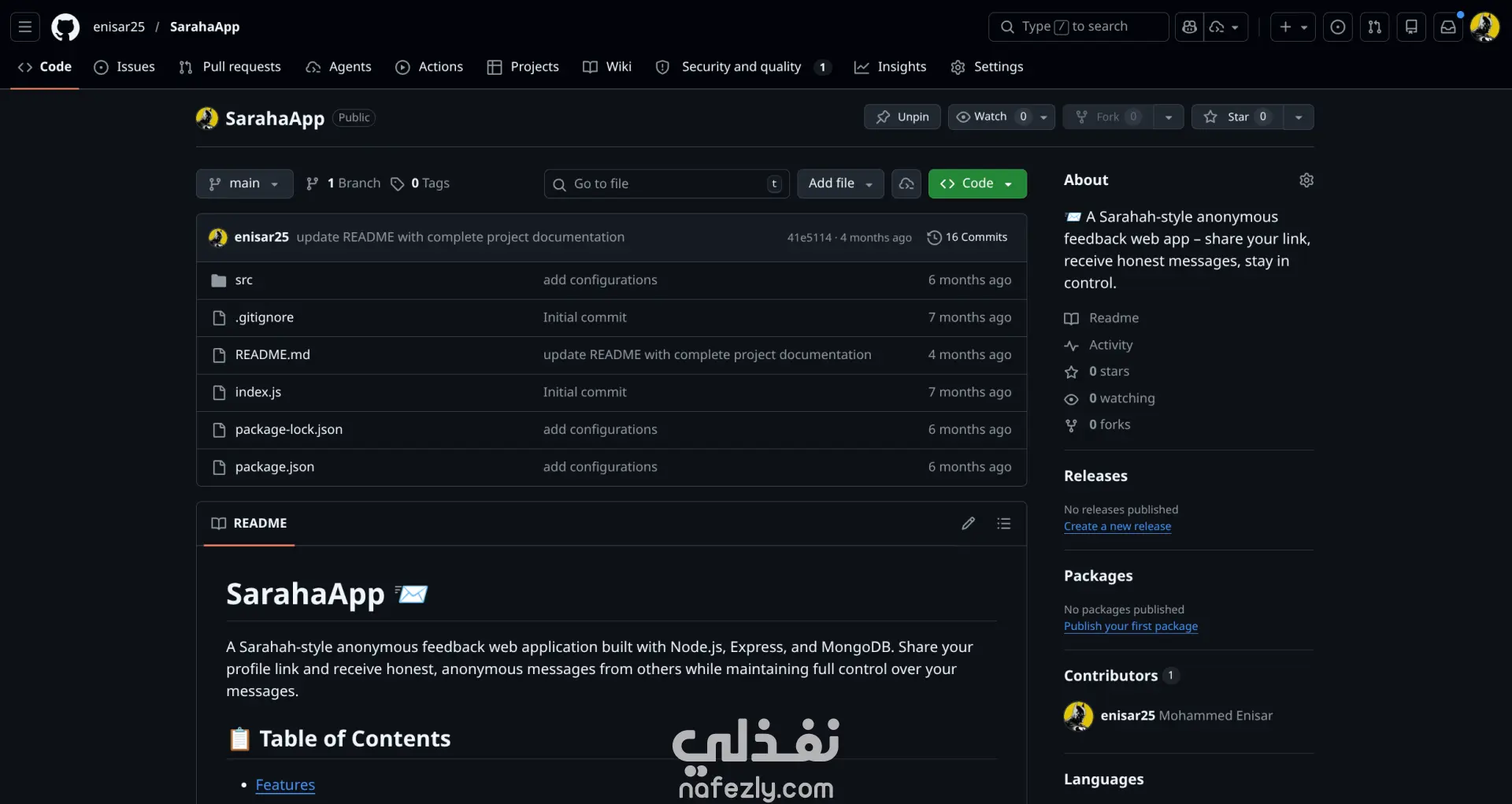 تطبيق رسائل مجهولة الهوية — Node.js & Express