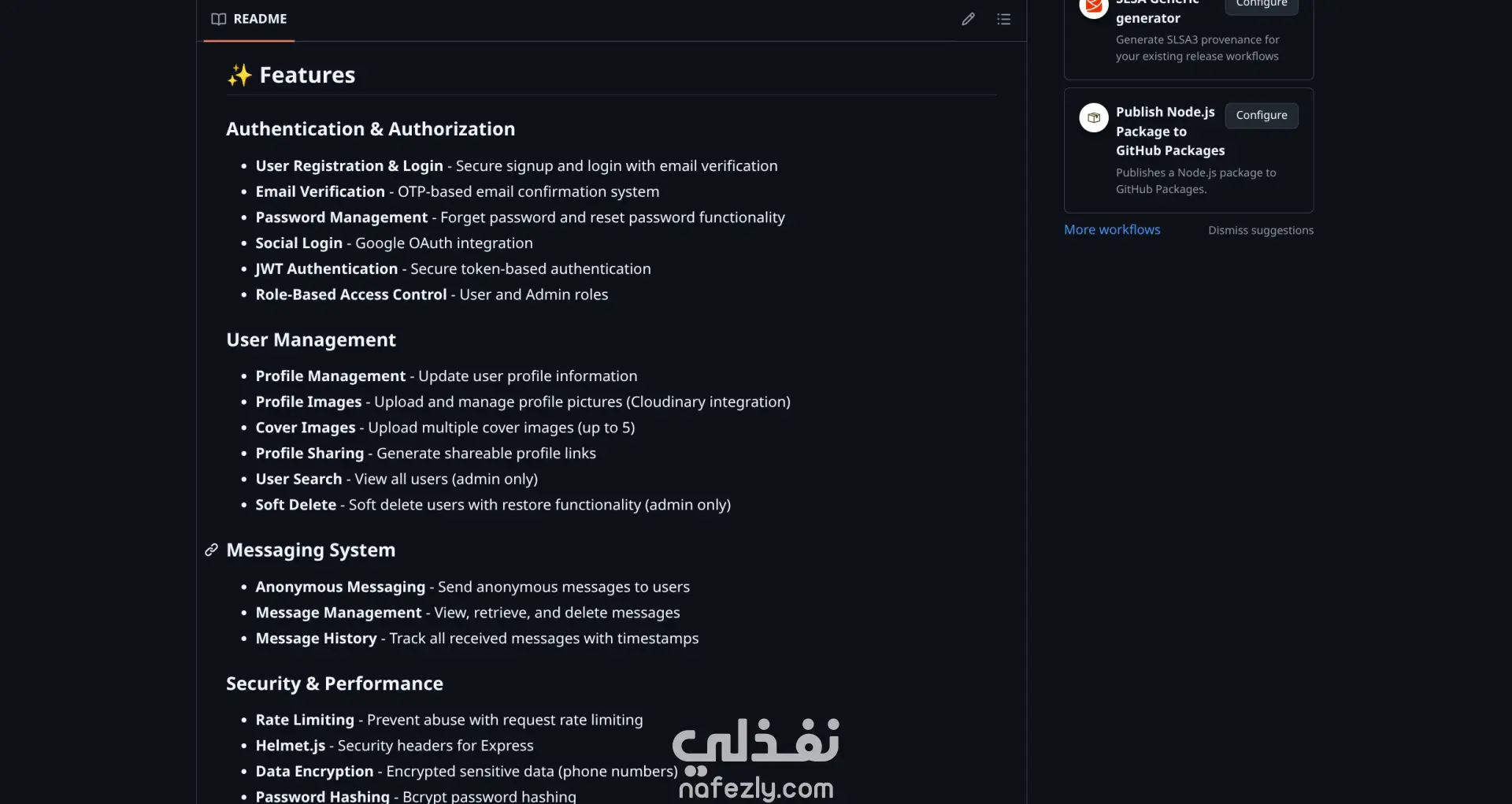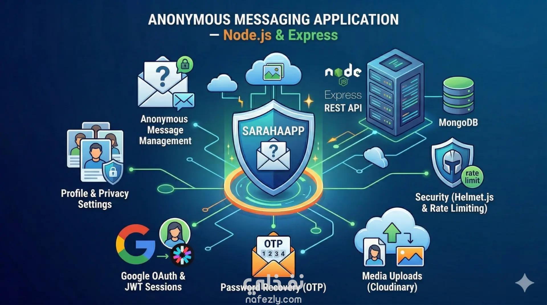 تطبيق ويب لإرسال واستقبال رسائل مجهولة الهوية، مبني بـ Node.js وExpress وMongoDB. يدعم تسجيل الدخول بـ Google OAuth وإدارة الجلسات بـ JWT، ورفع صور الملف الشخصي وصور الغلاف على Cloudinary، واستعادة كلمة المرور عبر OTP. يطبق معايير الأمان الكاملة بـ Helmet.js والحد من معدل الطلبات وتشفير البيانات الحساسة.